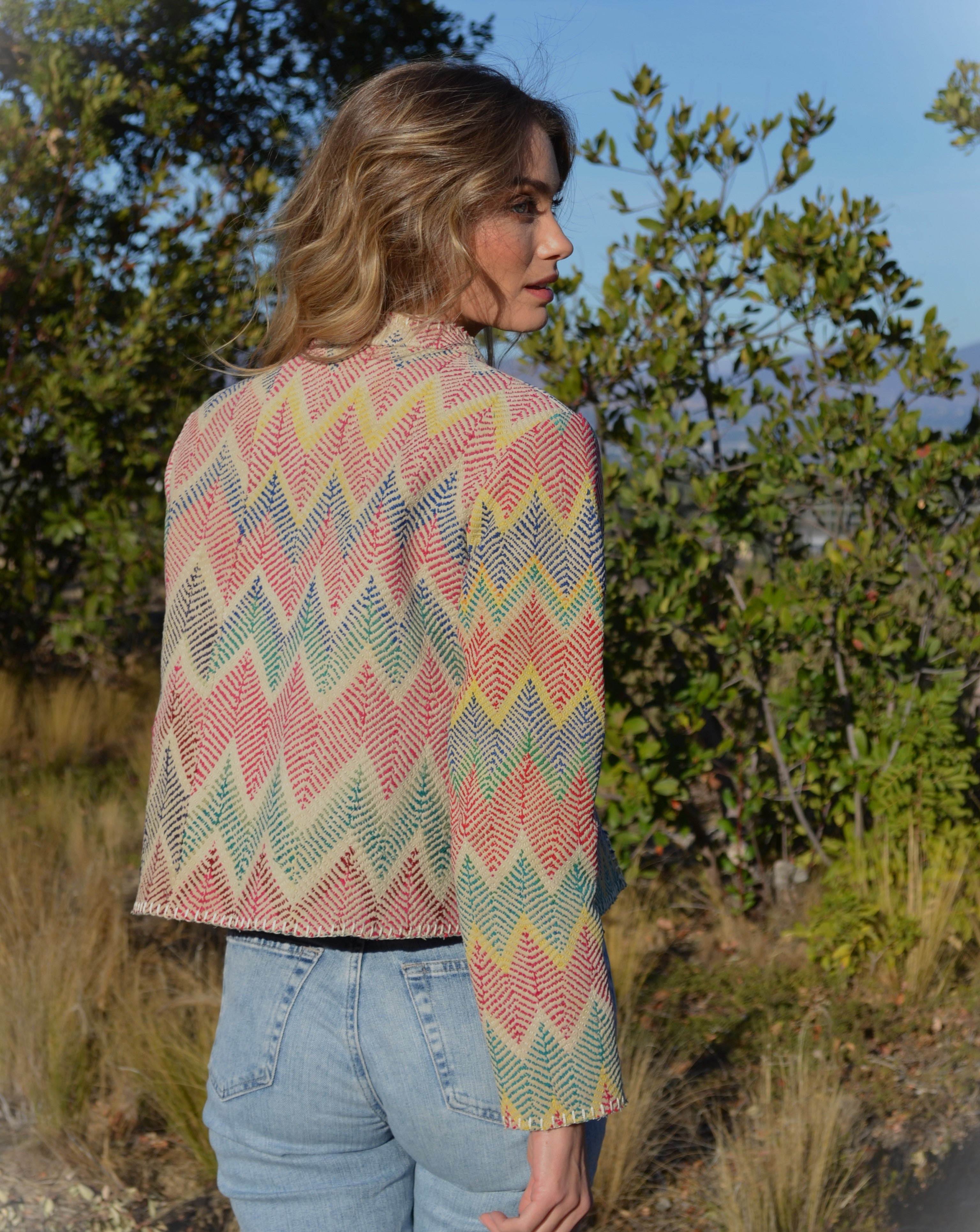 Ginxsi Jackets are made from repurposed Vintage Kantha quilts, and recycled cotton. The original patina may include areas of fraying or patches. Due to the nature of a handmade product, variations in the fabric and color make each piece unique.