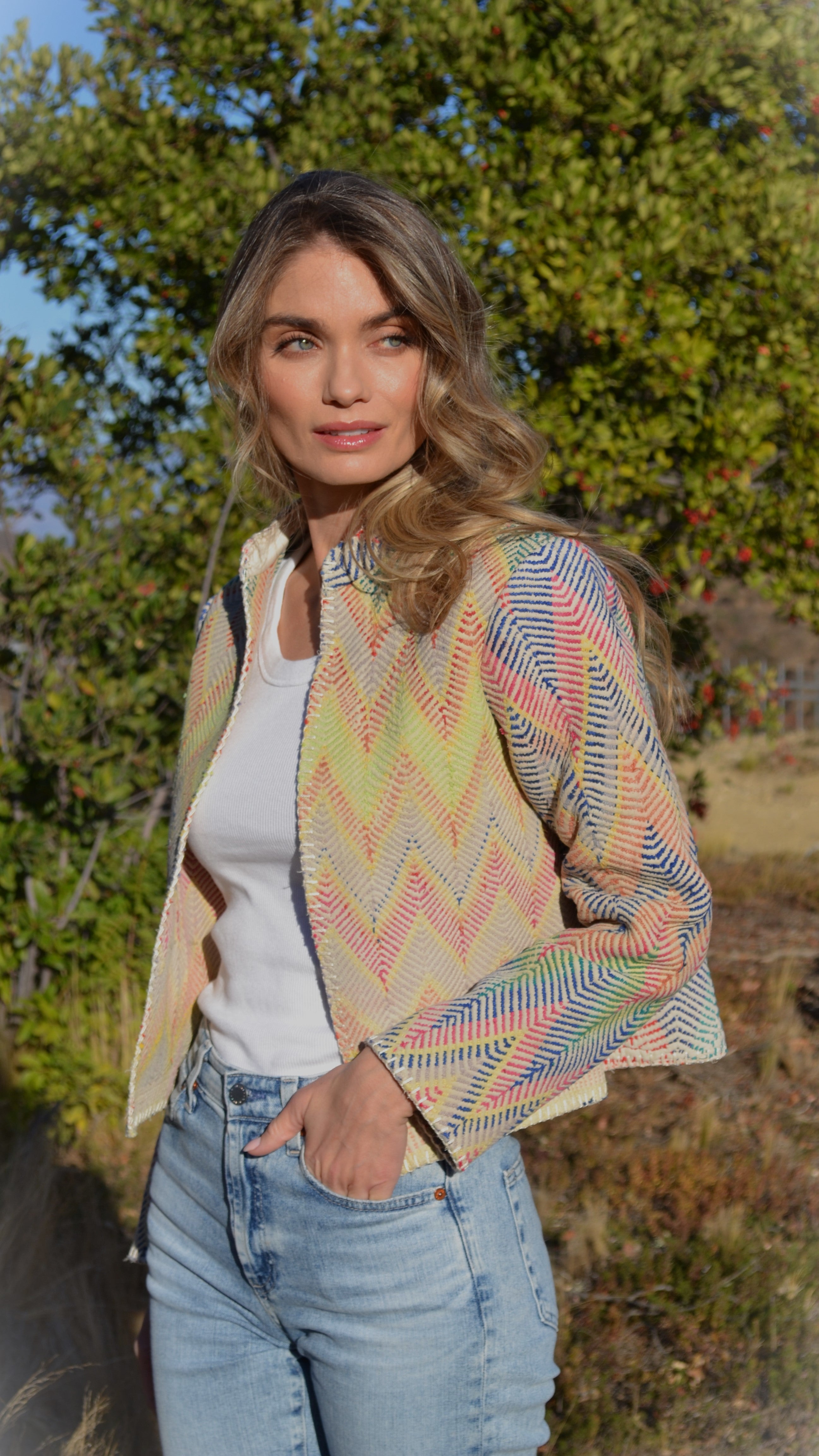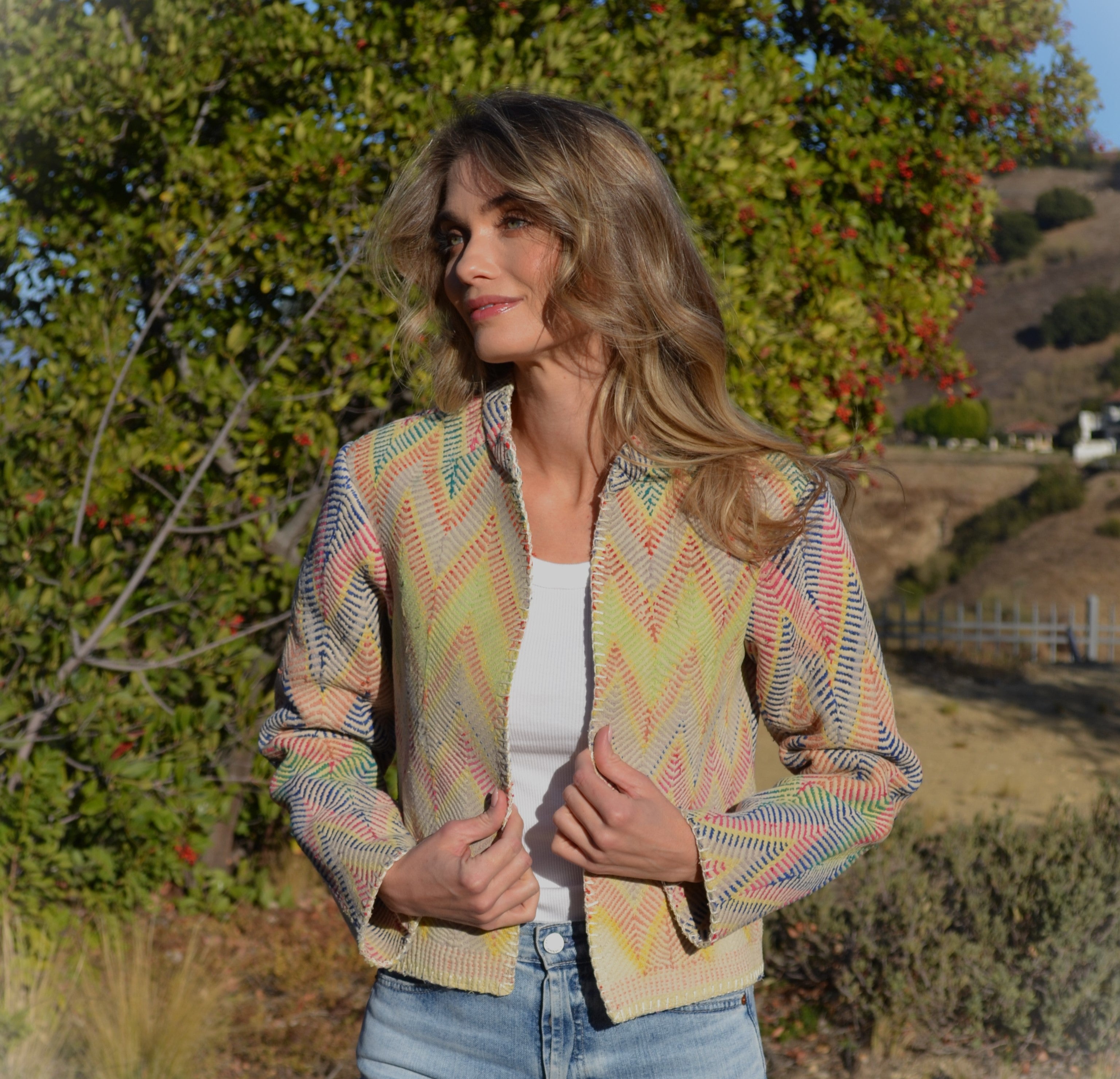 Embrace the beauty of tradition and contemporary style with our exquisite Kantha quilt jacket. Handcrafted by skilled artisans, this unique piece is a fusion of heritage and modern fashion. Each jacket is meticulously crafted using repurposed Vintage Kantha quilts, ensuring a one-of-a-kind garment that tells a story. Jackets are designed for a structured fit. Runs true to size.