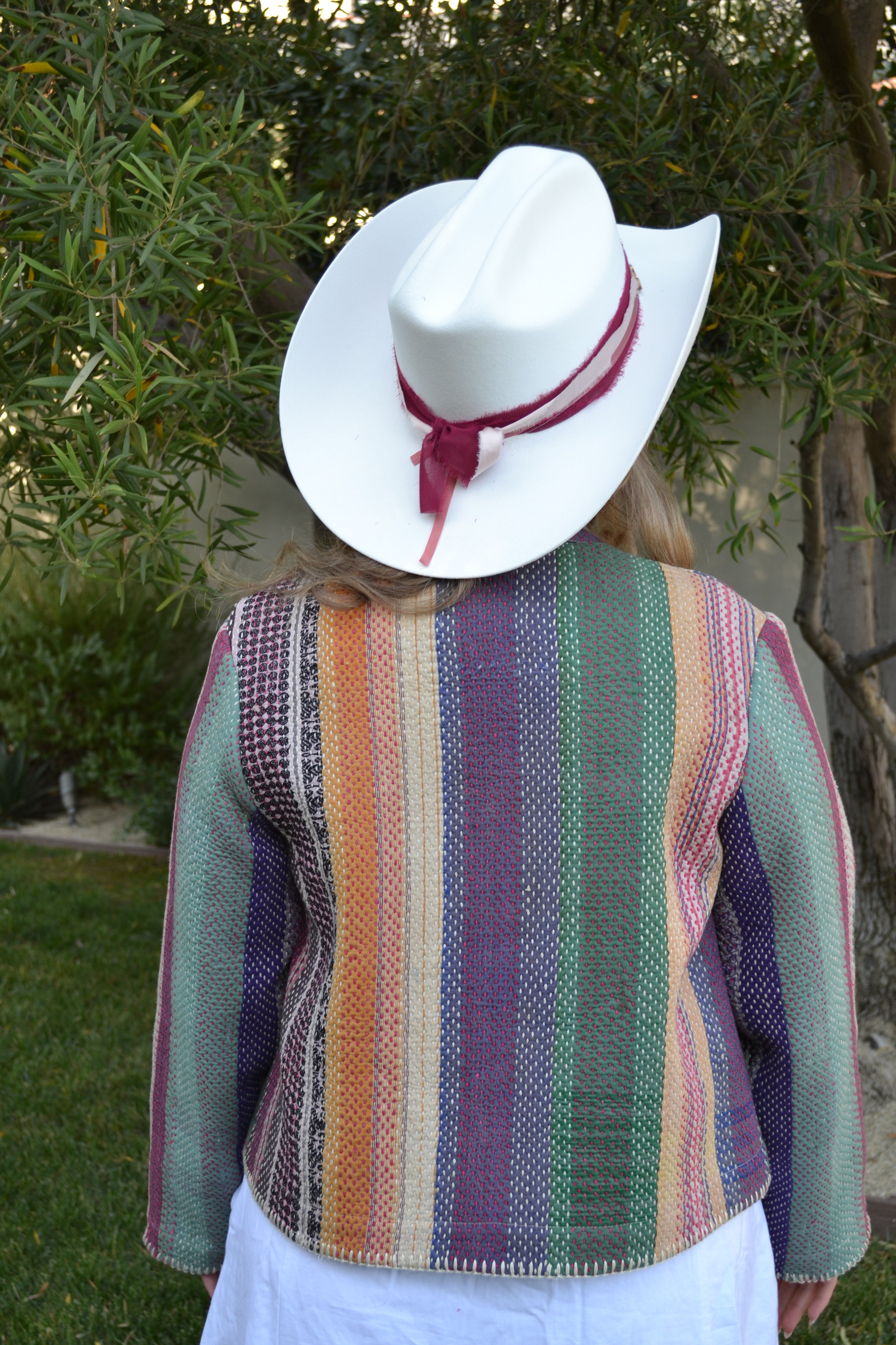 Ginxsi Jackets are made from repurposed Vintage Kantha quilts, and recycled cotton. The original patina may include areas of fraying or patches. Due to the nature of a handmade product, variations in the fabric and color make each piece unique.
