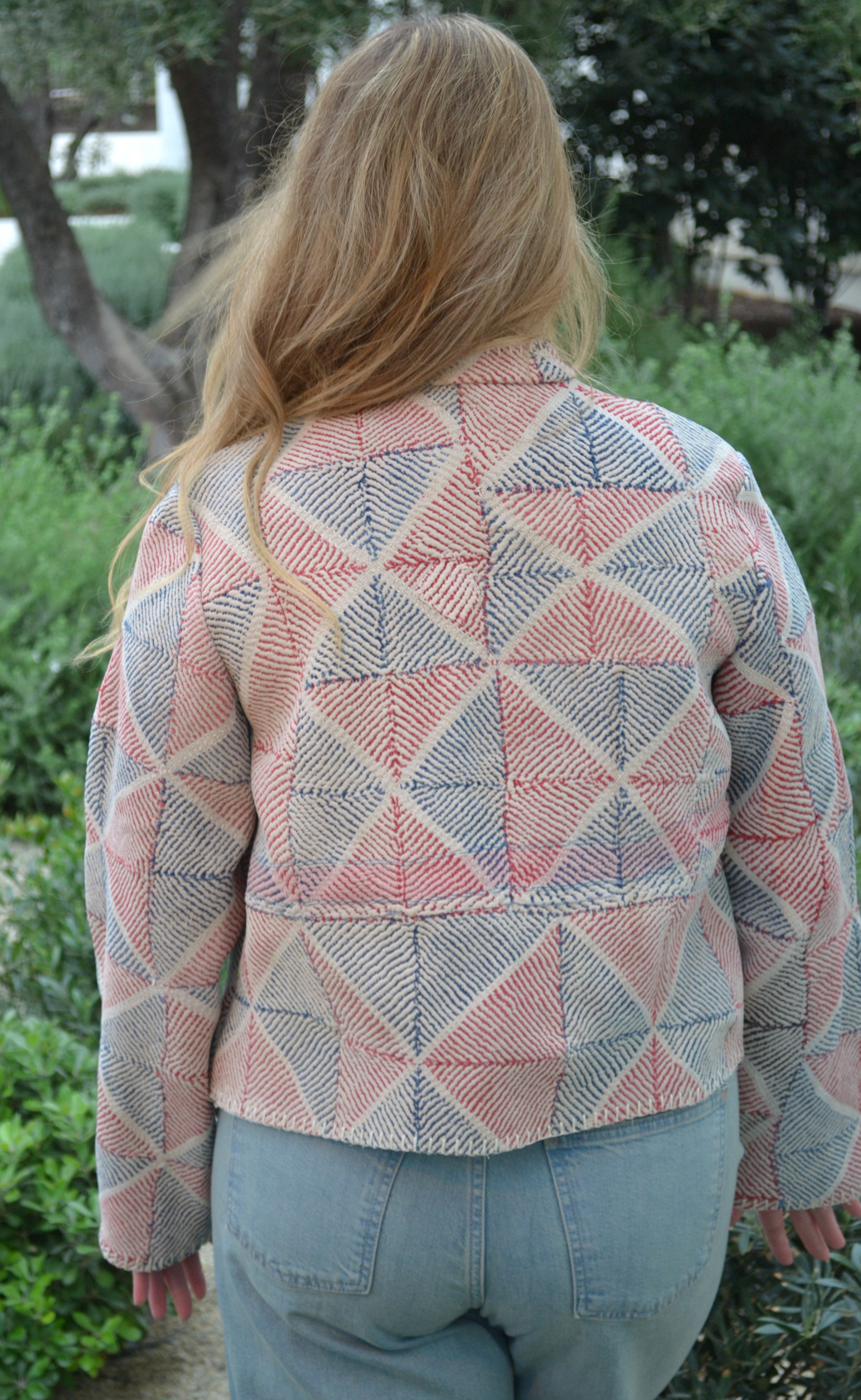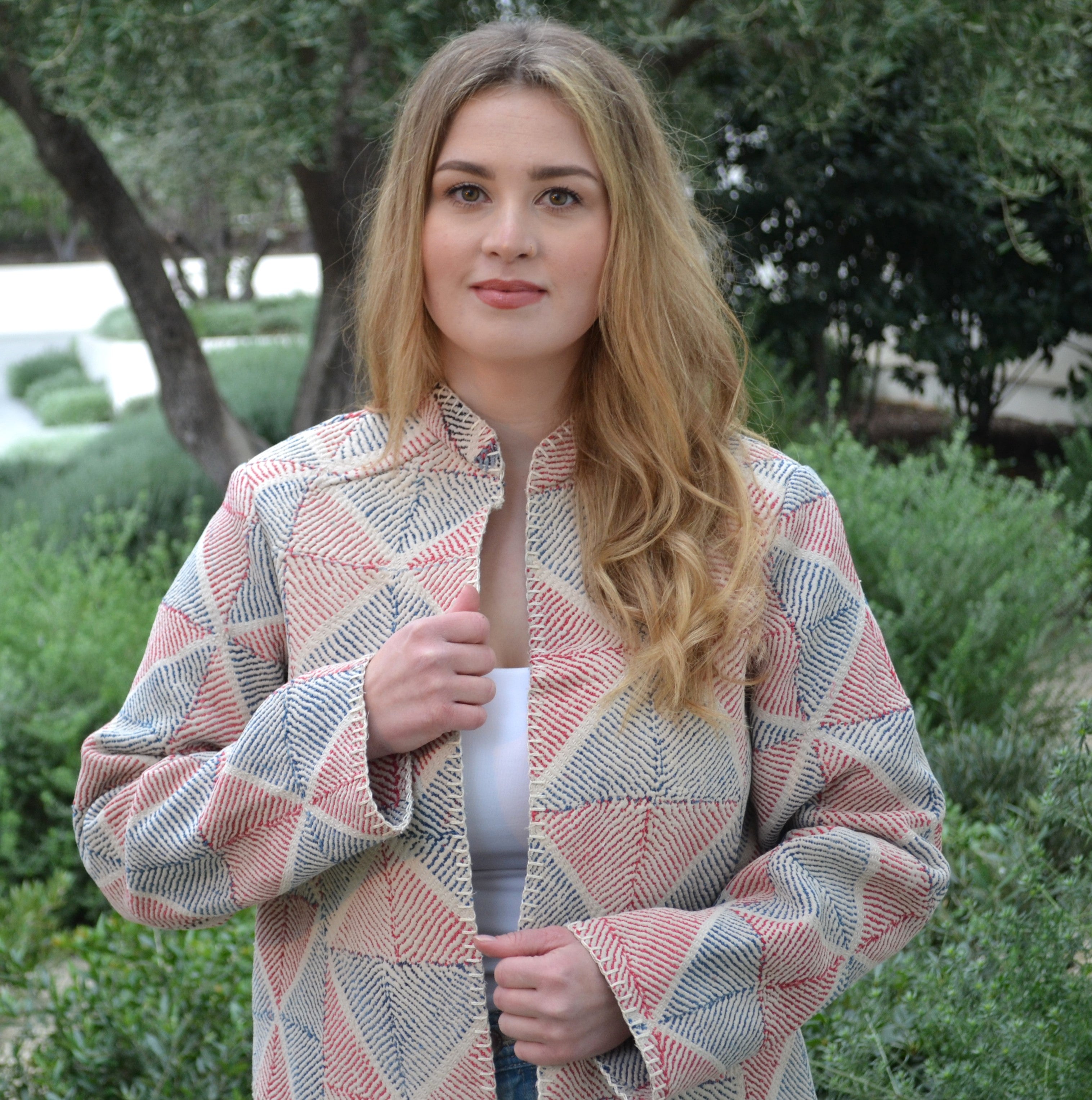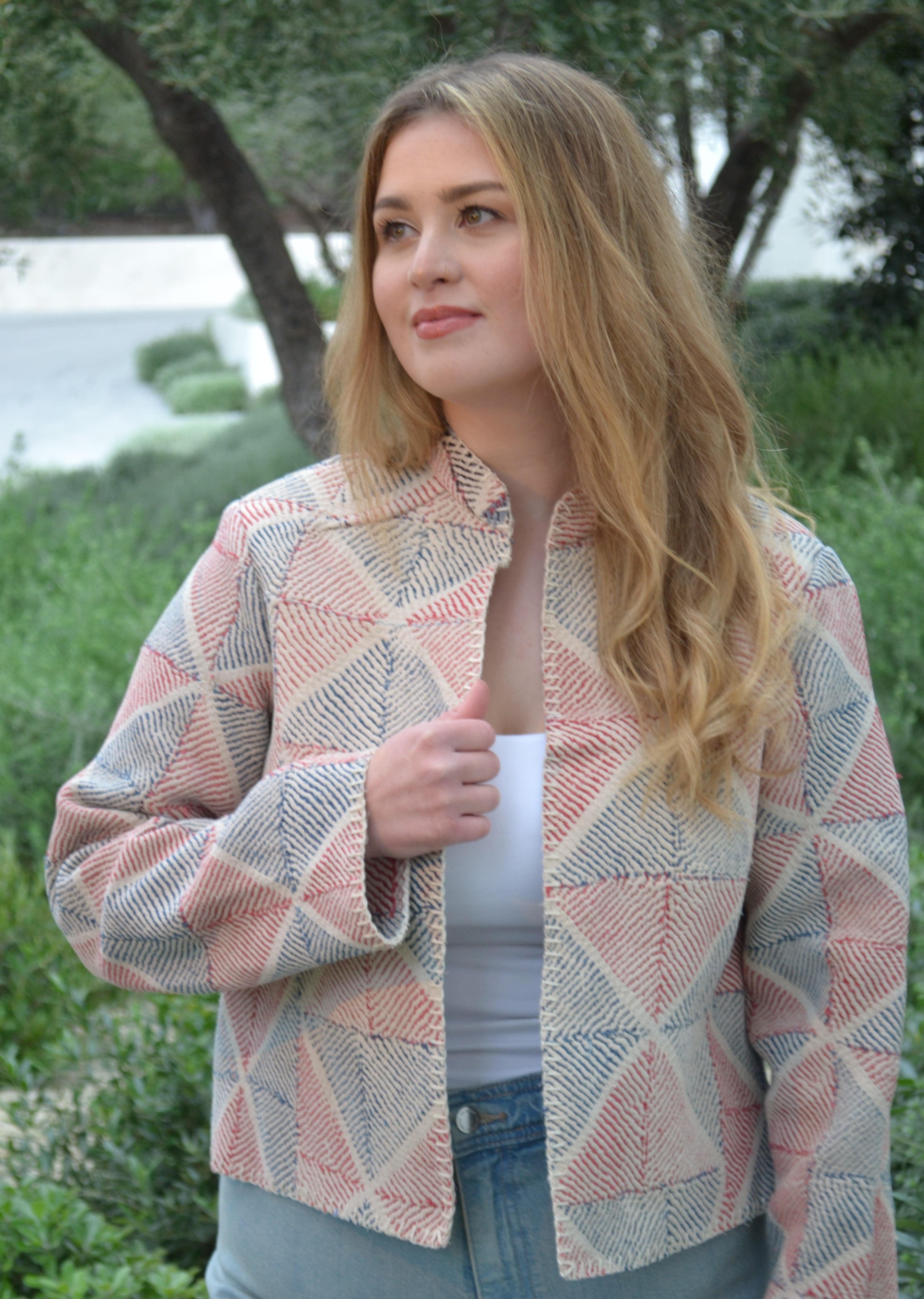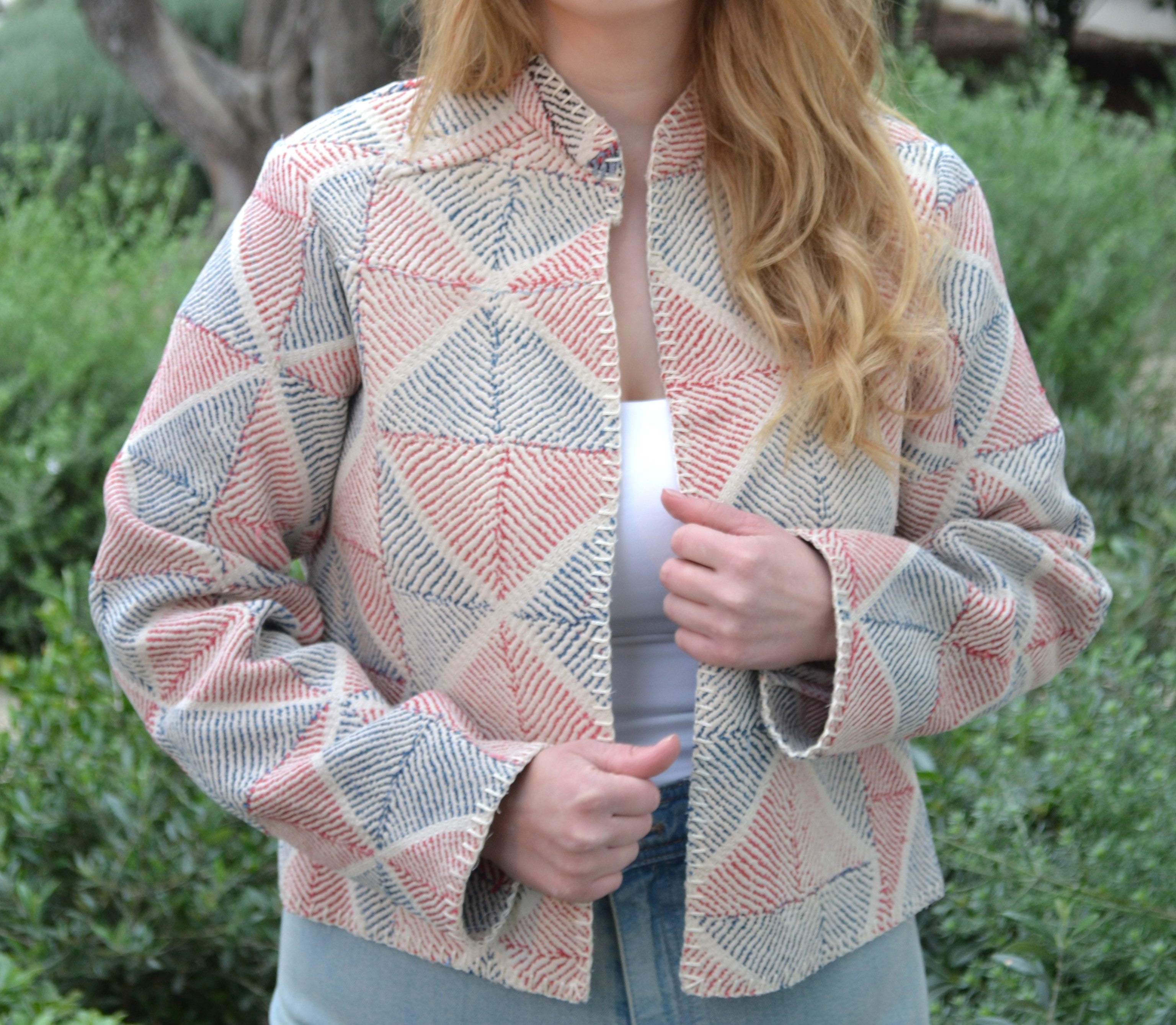 Embrace the beauty of tradition and contemporary style with our exquisite Kantha quilt jacket. Handcrafted by skilled artisans, this unique piece is a fusion of heritage and modern fashion. Each jacket is meticulously crafted using repurposed Vintage Kantha quilts, ensuring a one-of-a-kind garment that tells a story. Jackets are designed for a structured fit. Runs true to size.