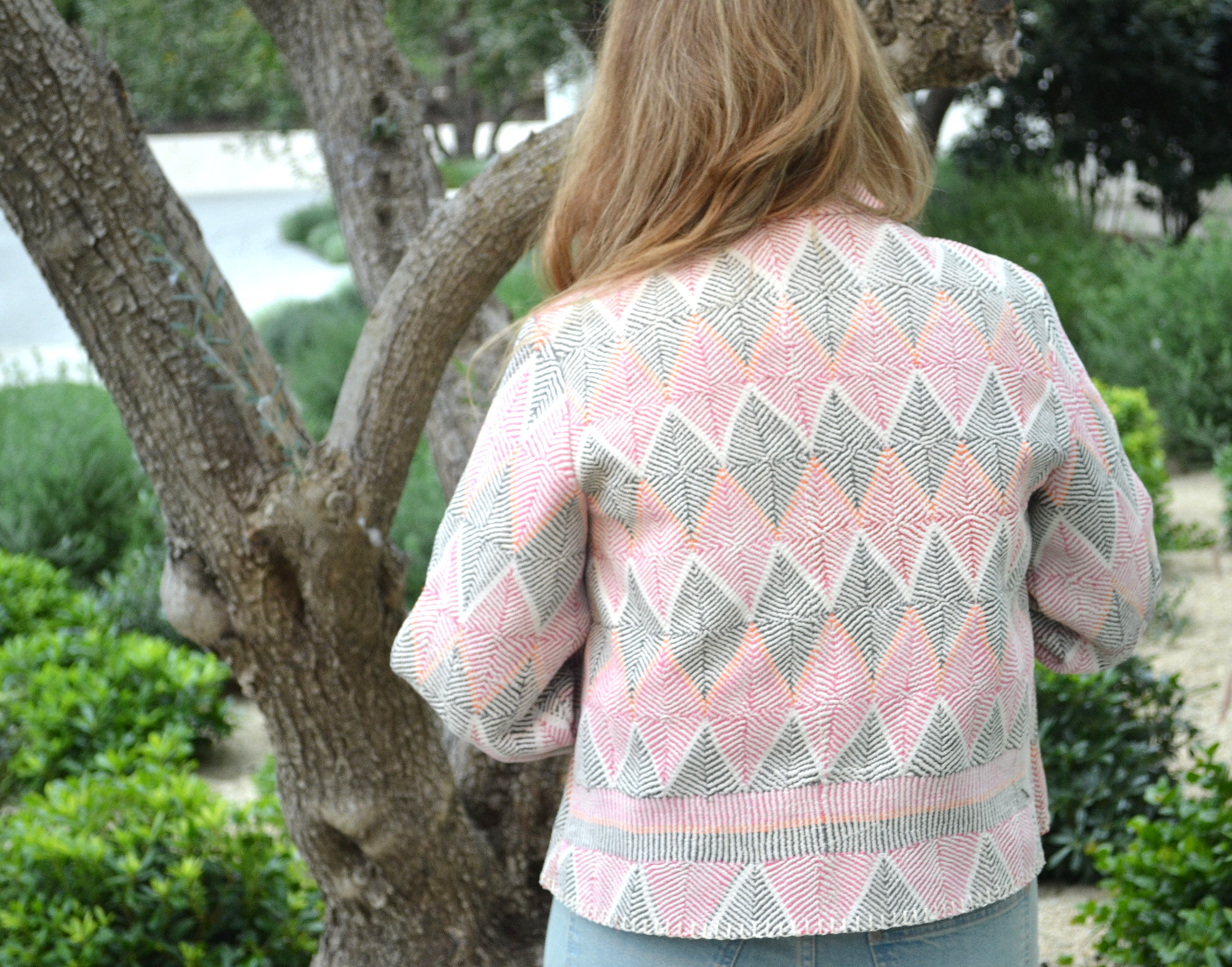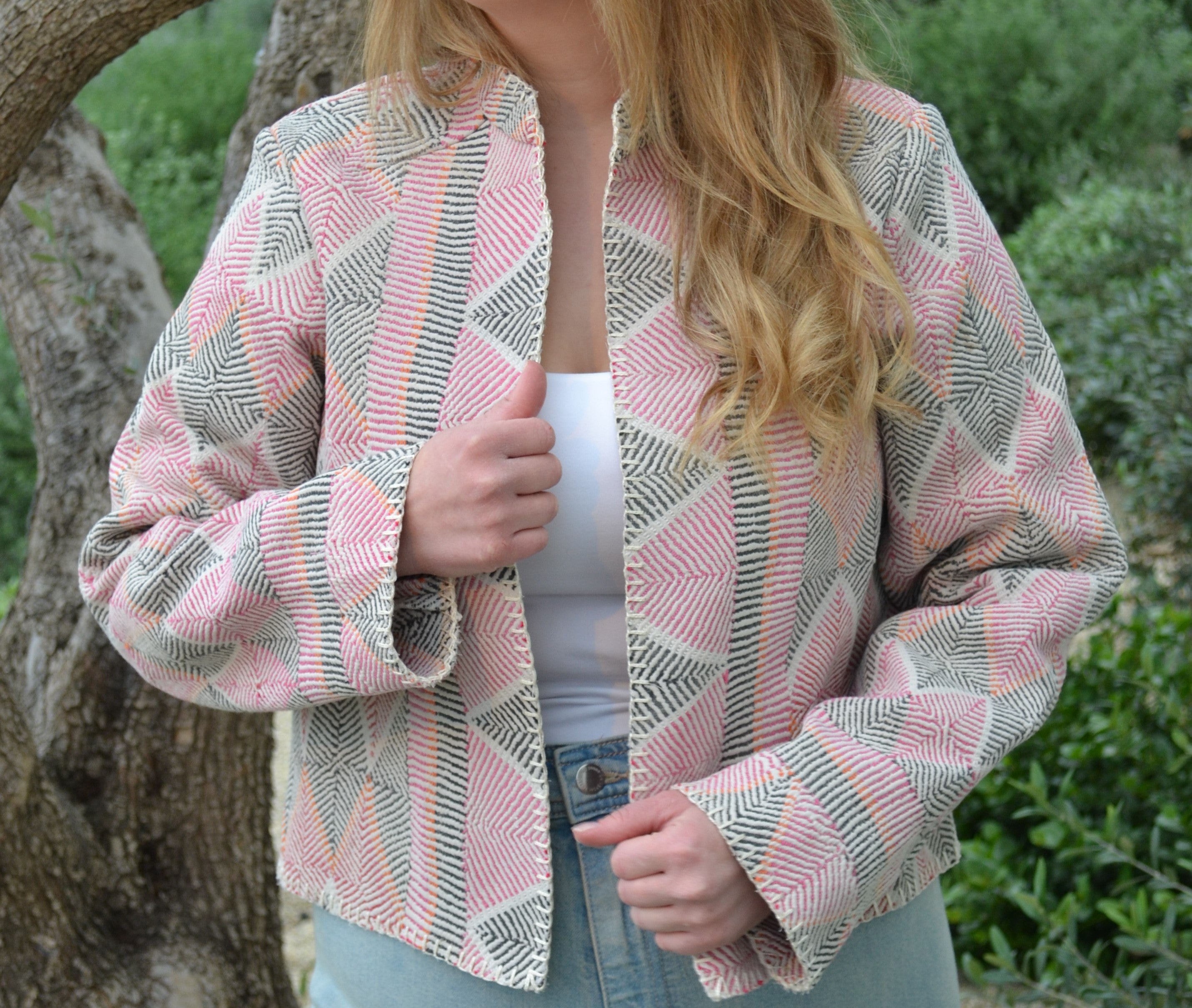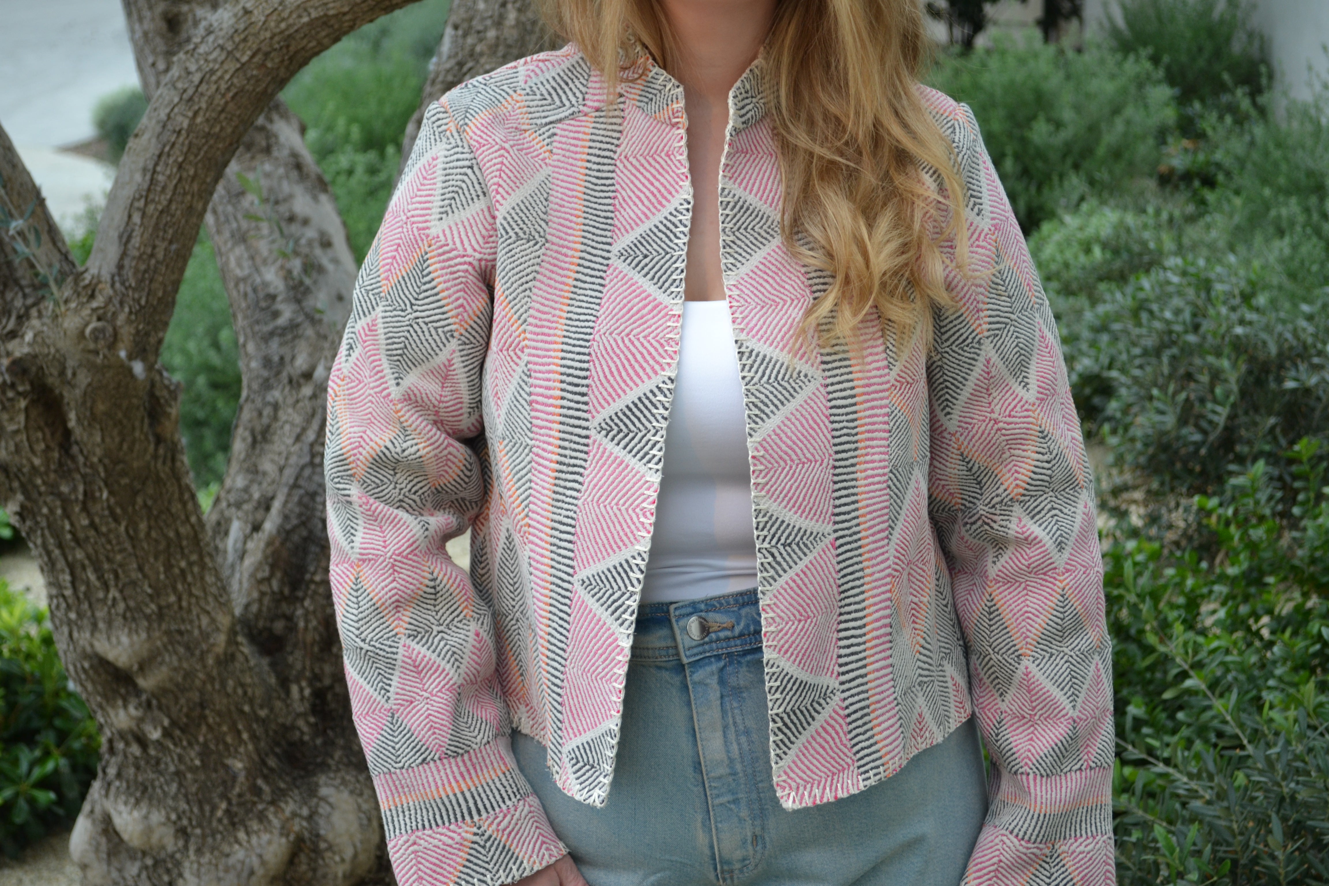 Ginxsi Jackets are made from repurposed Vintage Kantha quilts, and recycled cotton. The original patina may include areas of fraying or patches. Due to the nature of a handmade product, variations in the fabric and color make each piece unique.