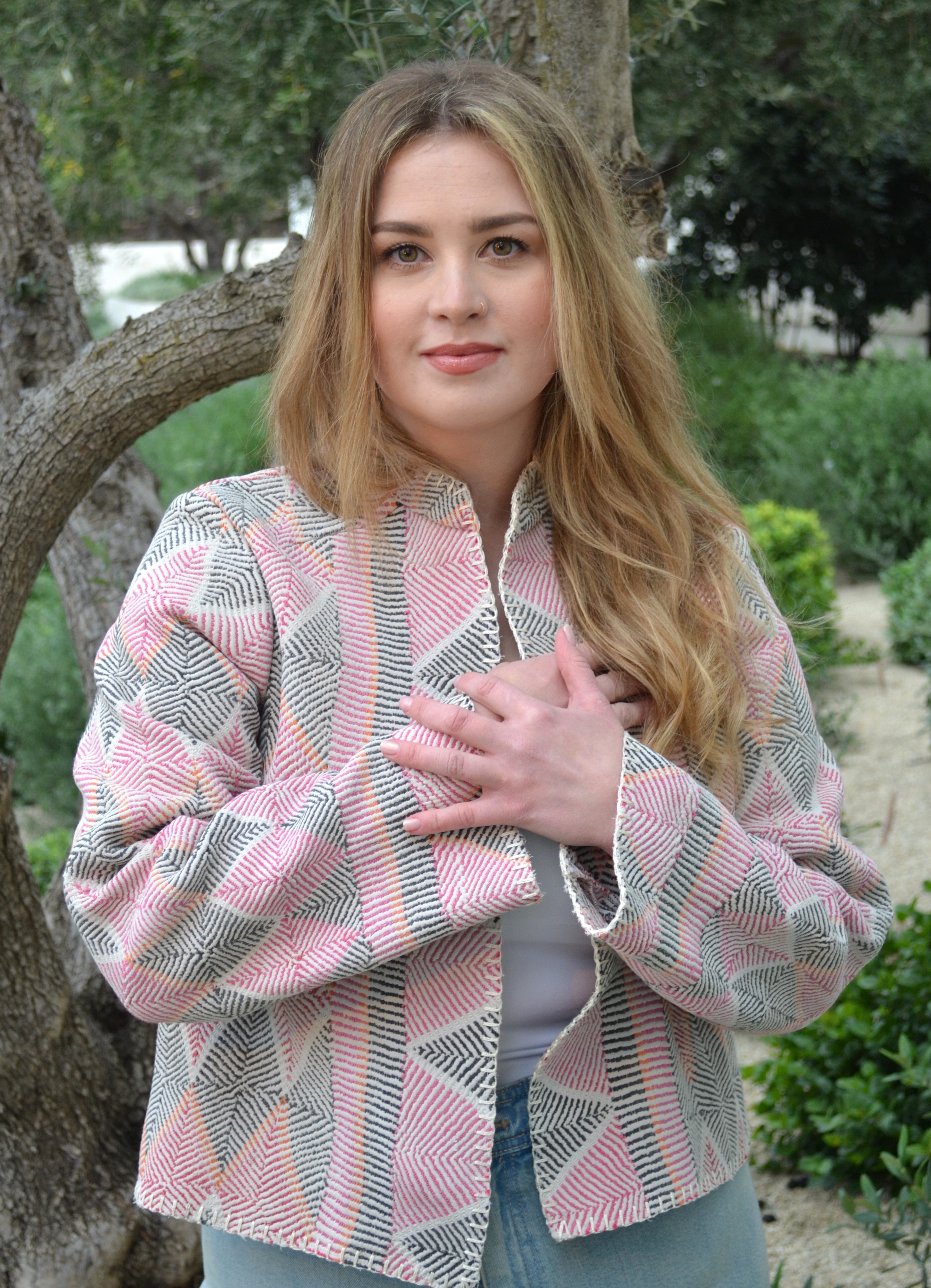 Embrace the beauty of tradition and contemporary style with our exquisite Kantha quilt jacket. Handcrafted by skilled artisans, this unique piece is a fusion of heritage and modern fashion. Each jacket is meticulously crafted using repurposed Vintage Kantha quilts, ensuring a one-of-a-kind garment that tells a story. Jackets are designed for a structured fit. Runs true to size.