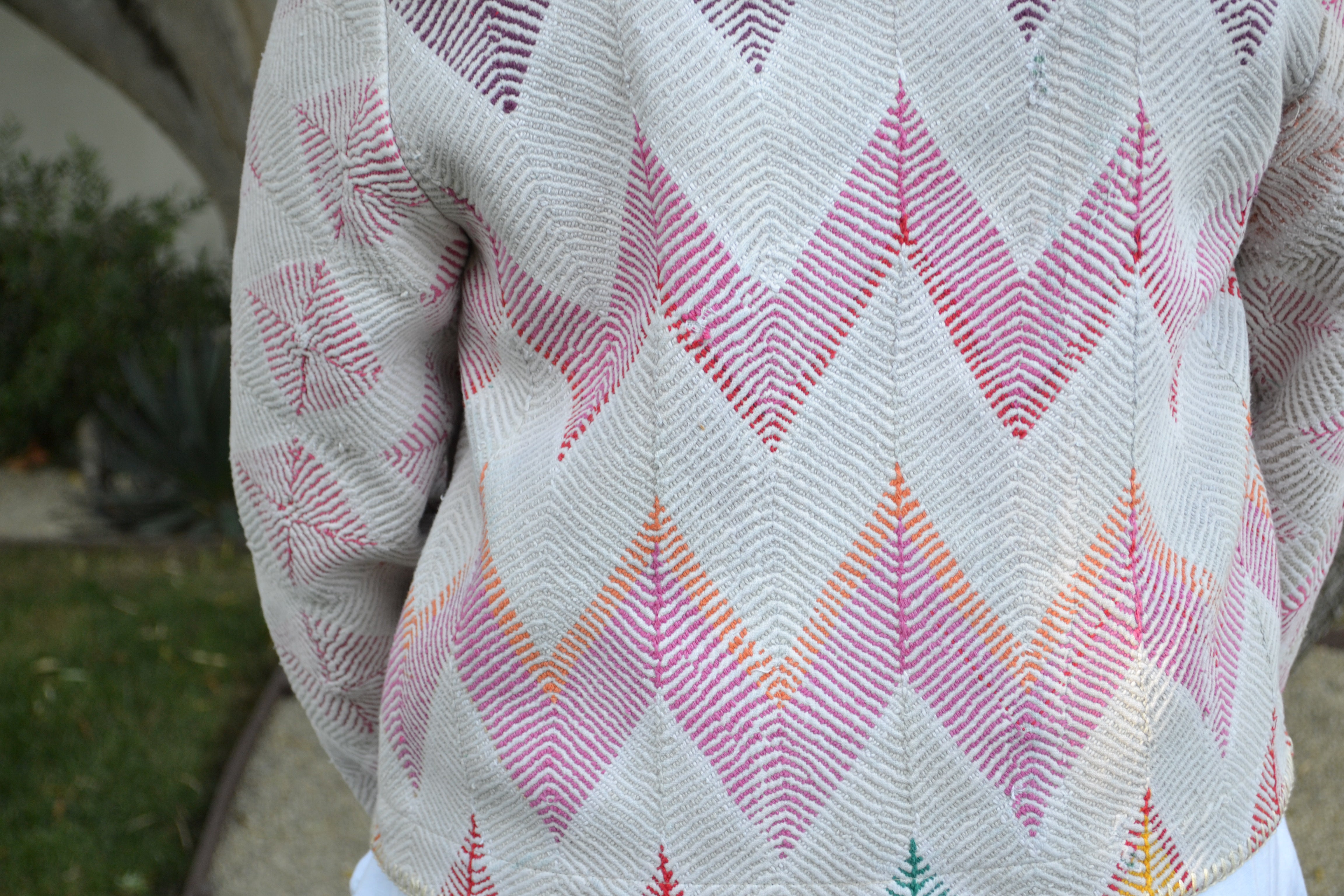 Ginxsi Jackets are made from repurposed Vintage Kantha quilts, and recycled cotton. The original patina may include areas of fraying or patches. Due to the nature of a handmade product, variations in the fabric and color make each piece unique.