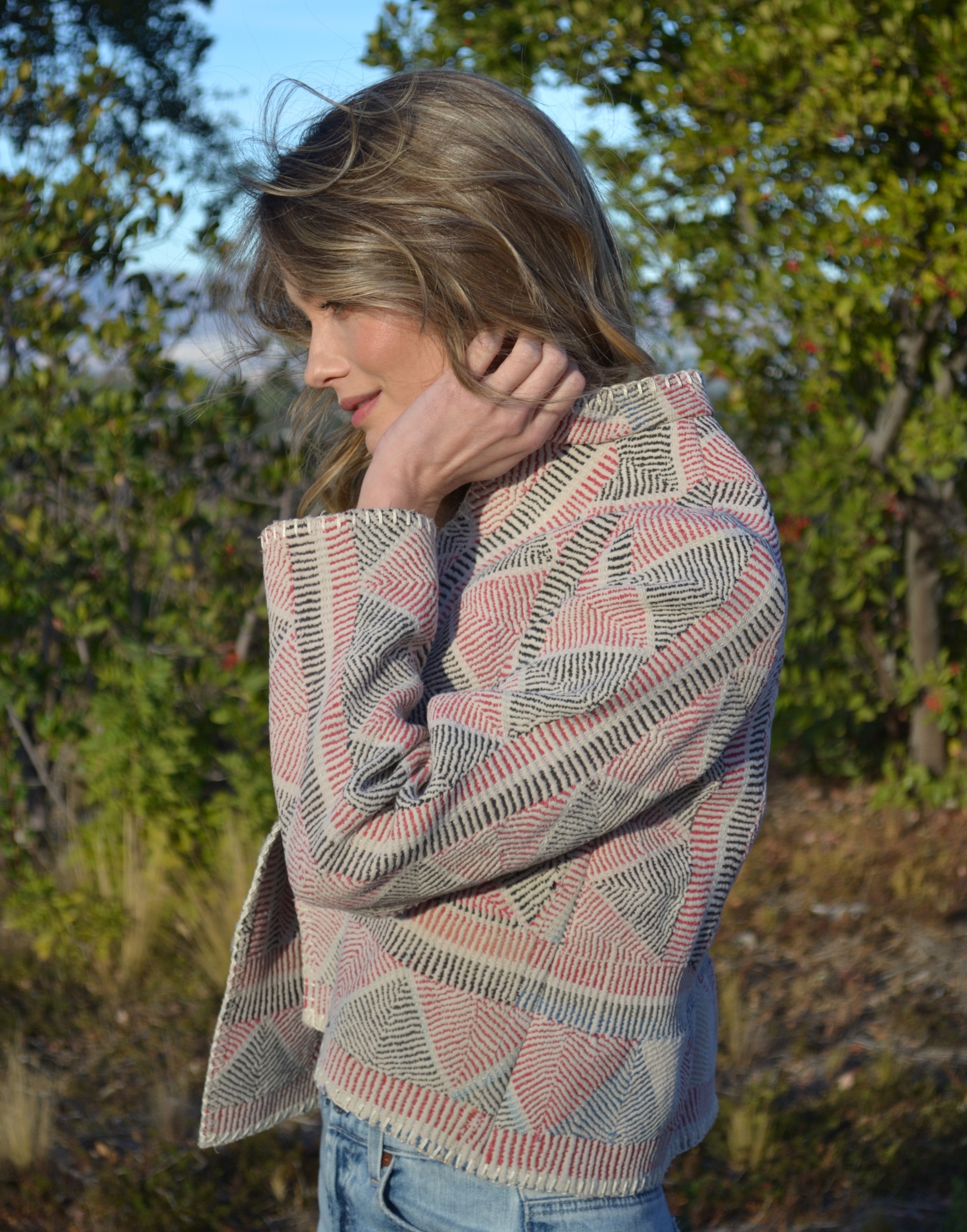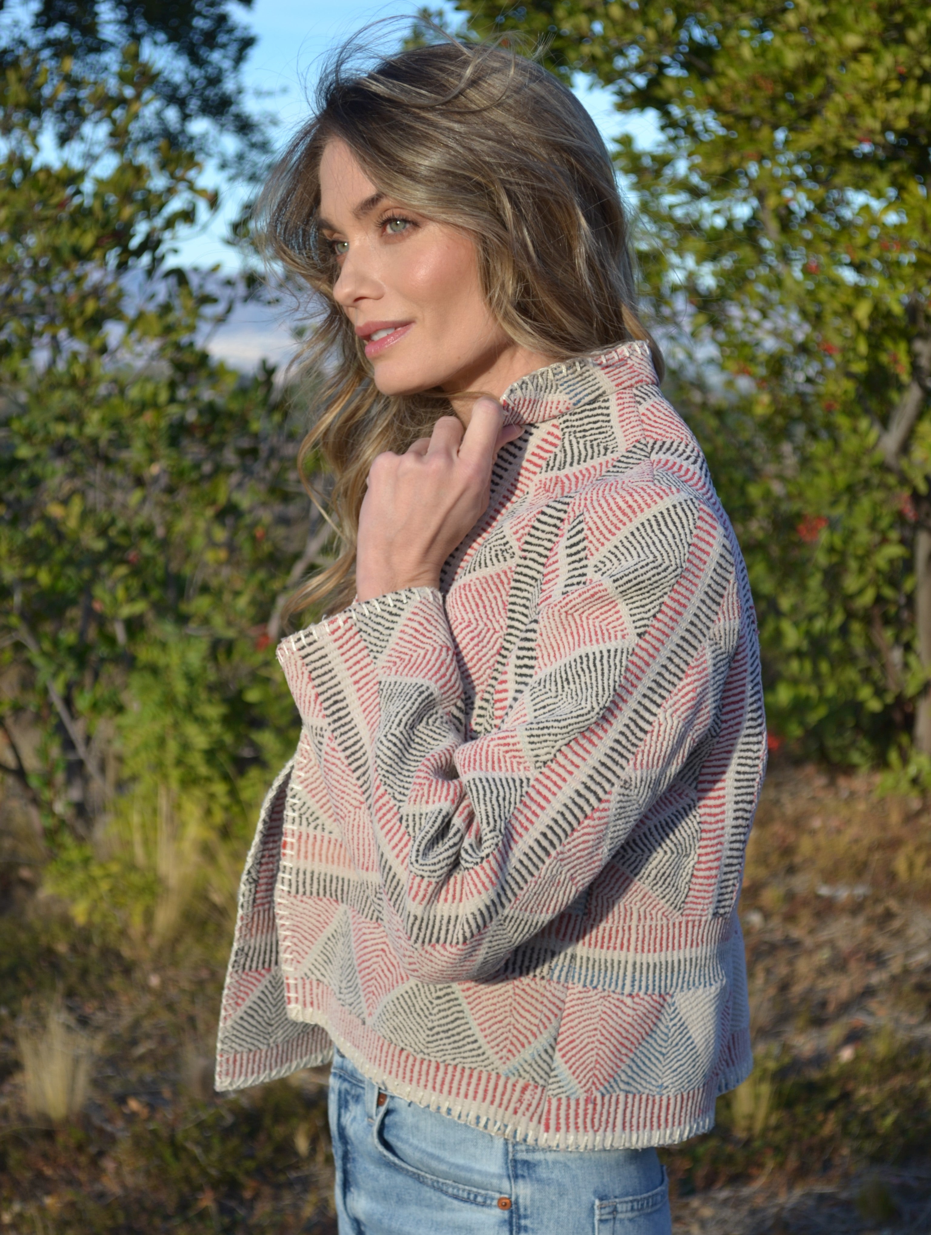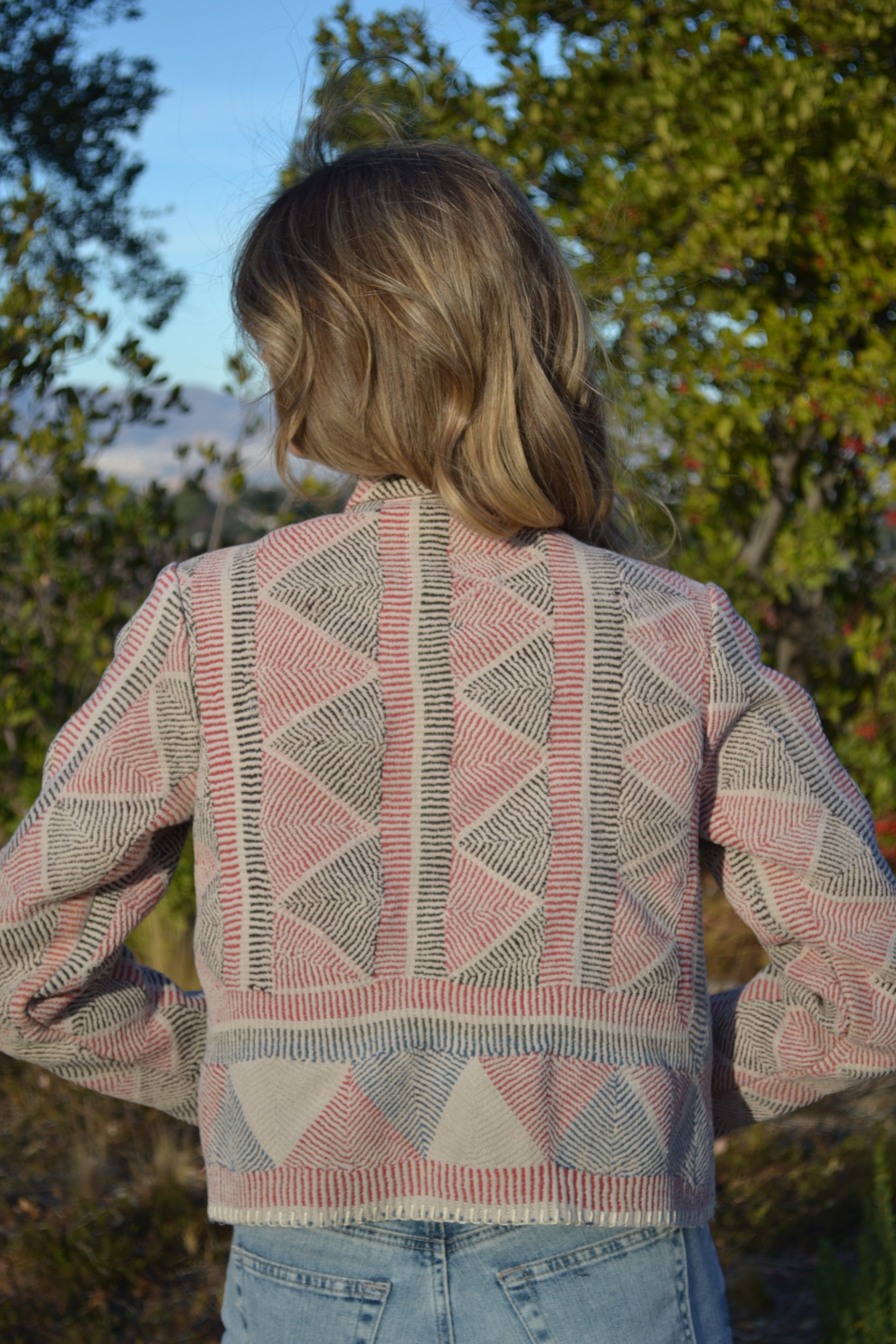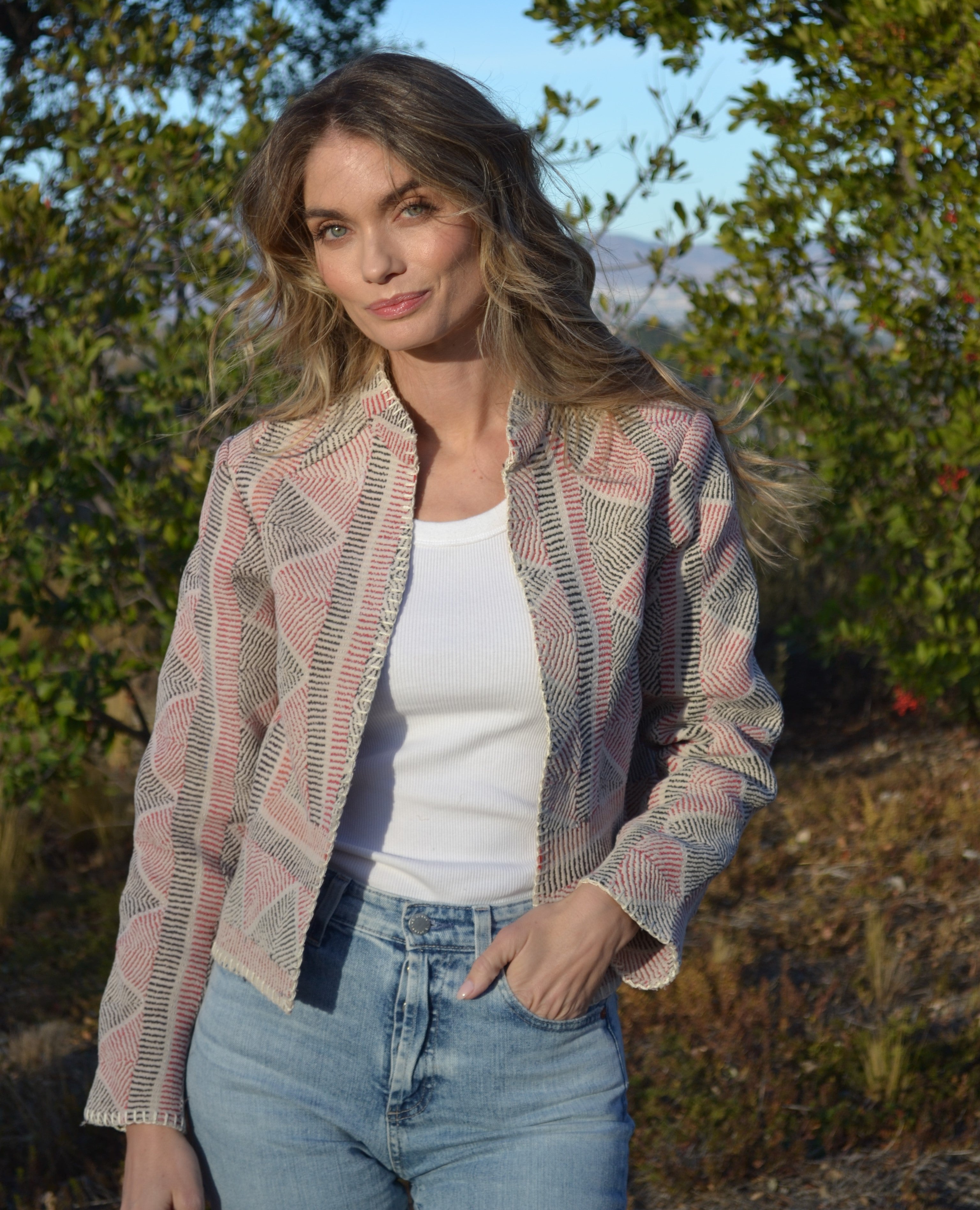 Ginxsi Jackets are made from repurposed Vintage Kantha quilts, and recycled cotton. The original patina may include areas of fraying or patches. Due to the nature of a handmade product, variations in the fabric and color make each piece unique.