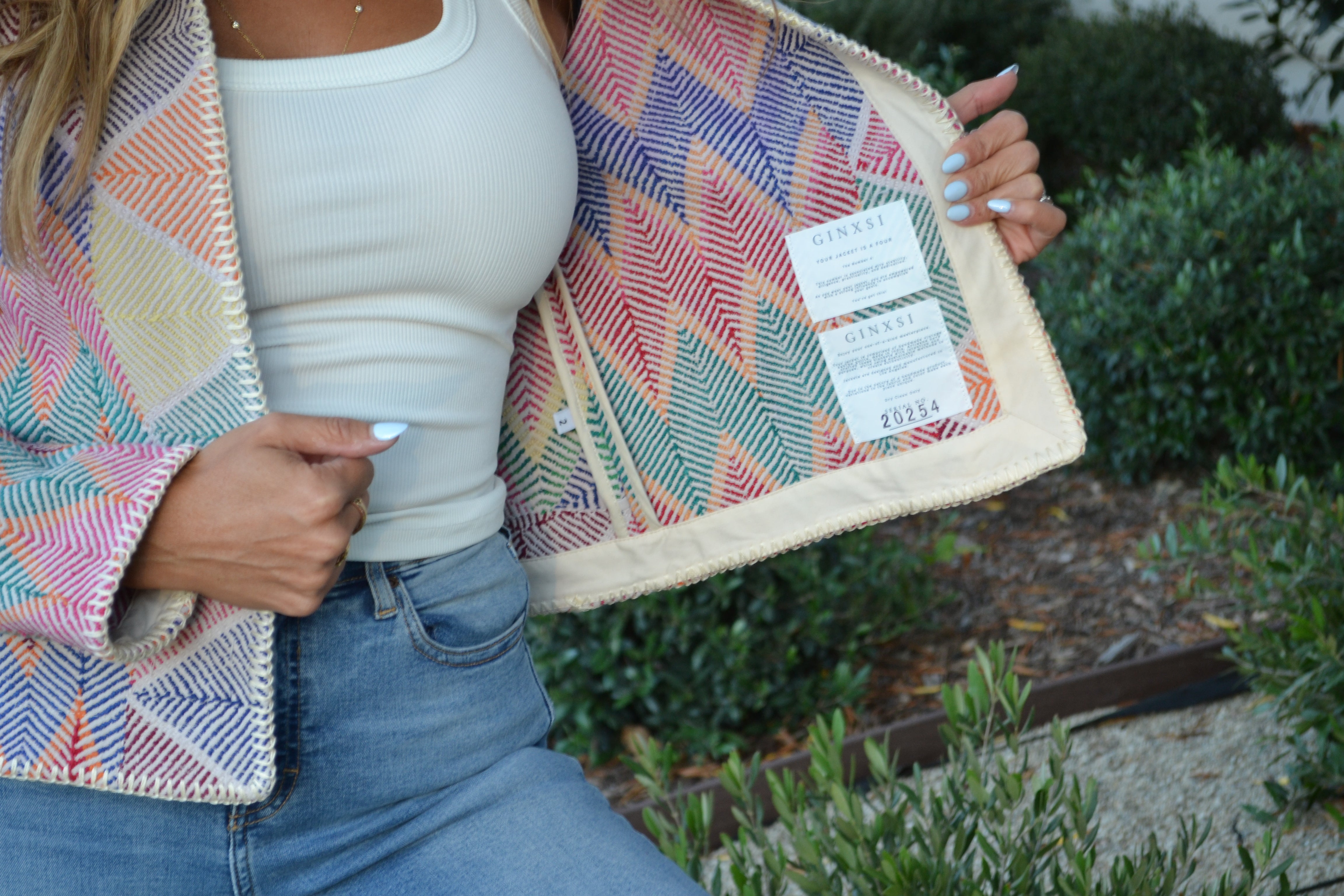 Ginxsi Jackets are made from repurposed Vintage Kantha quilts, and recycled cotton. The original patina may include areas of fraying or patches. Due to the nature of a handmade product, variations in the fabric and color make each piece unique.