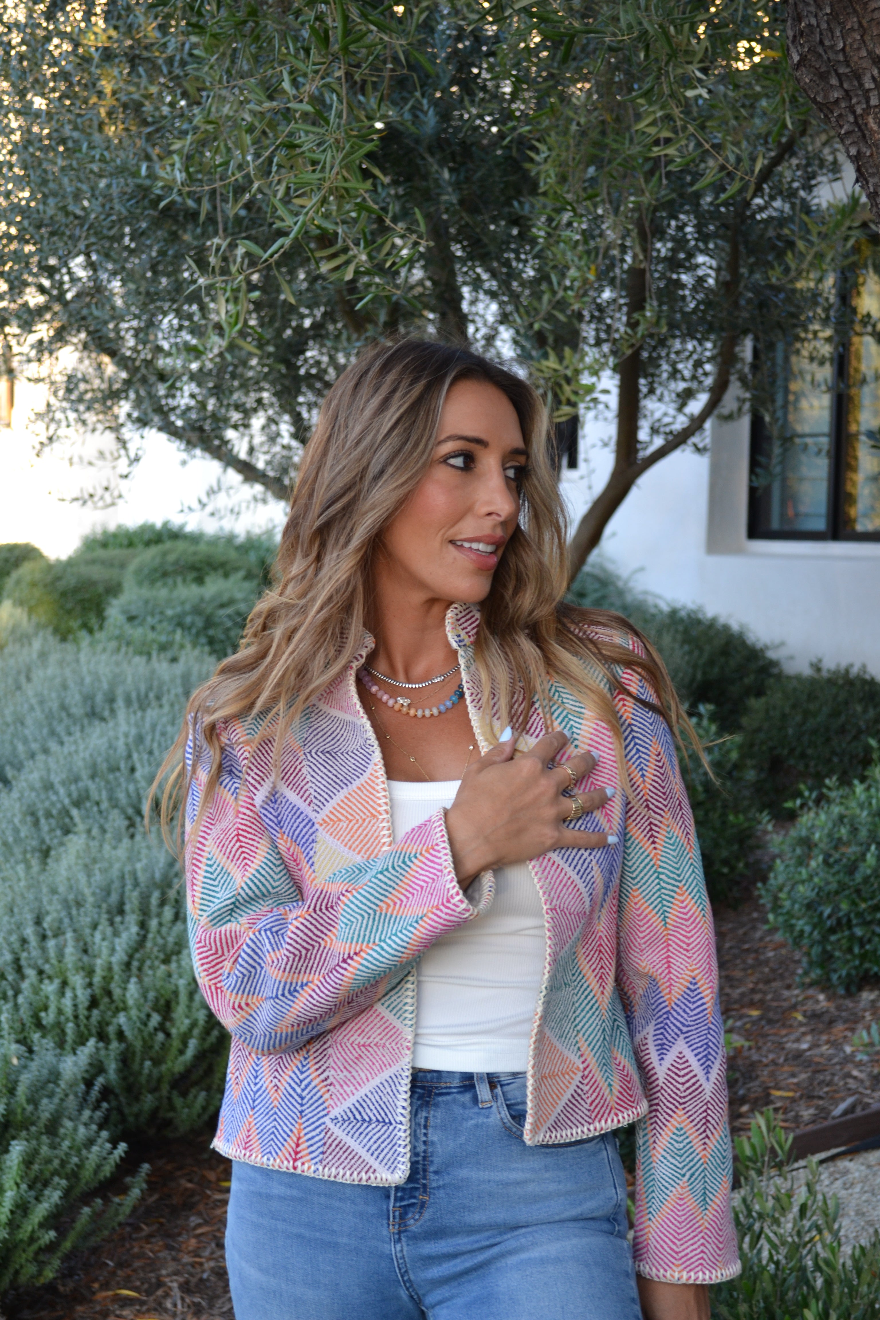 Embrace the beauty of tradition and contemporary style with our exquisite Kantha quilt jacket. Handcrafted by skilled artisans, this unique piece is a fusion of heritage and modern fashion. Each jacket is meticulously crafted using repurposed Vintage Kantha quilts, ensuring a one-of-a-kind garment that tells a story. Jackets are designed for a structured fit. Runs true to size.