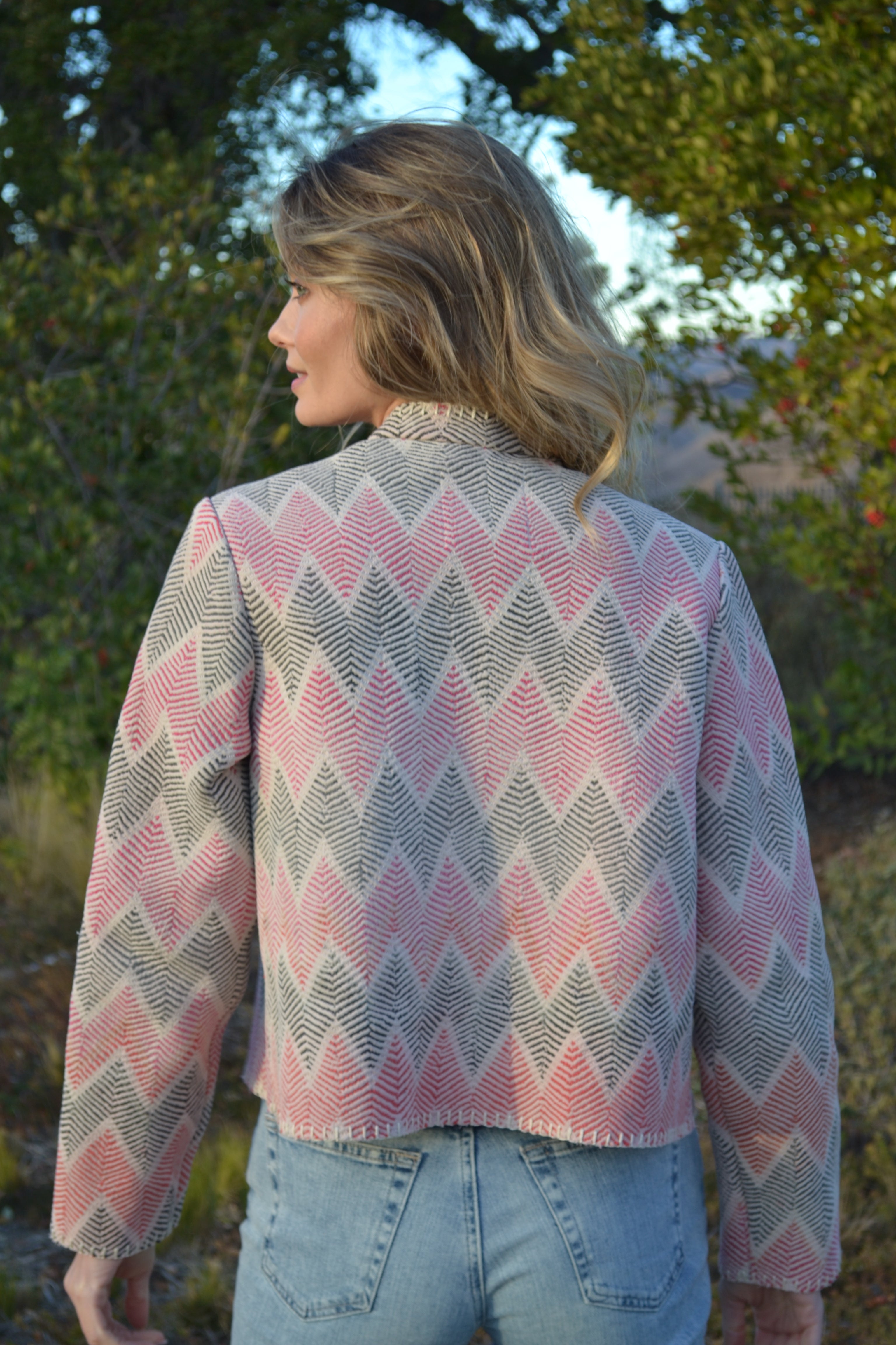 Ginxsi Jackets are made from repurposed Vintage Kantha quilts, and recycled cotton. The original patina may include areas of fraying or patches. Due to the nature of a handmade product, variations in the fabric and color make each piece unique.