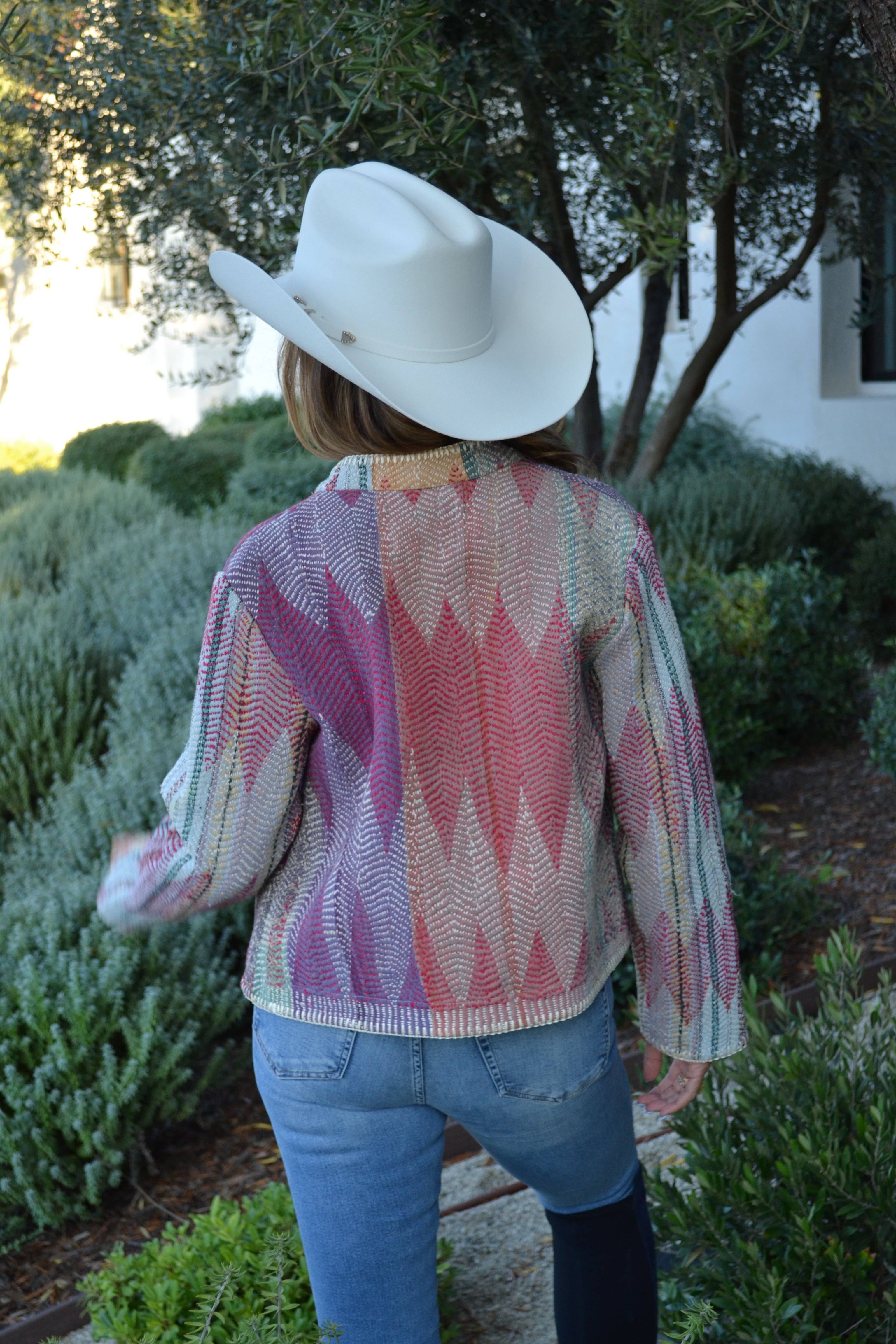 Ginxsi Jackets are made from repurposed Vintage Kantha quilts, and recycled cotton. The original patina may include areas of fraying or patches. Due to the nature of a handmade product, variations in the fabric and color make each piece unique.