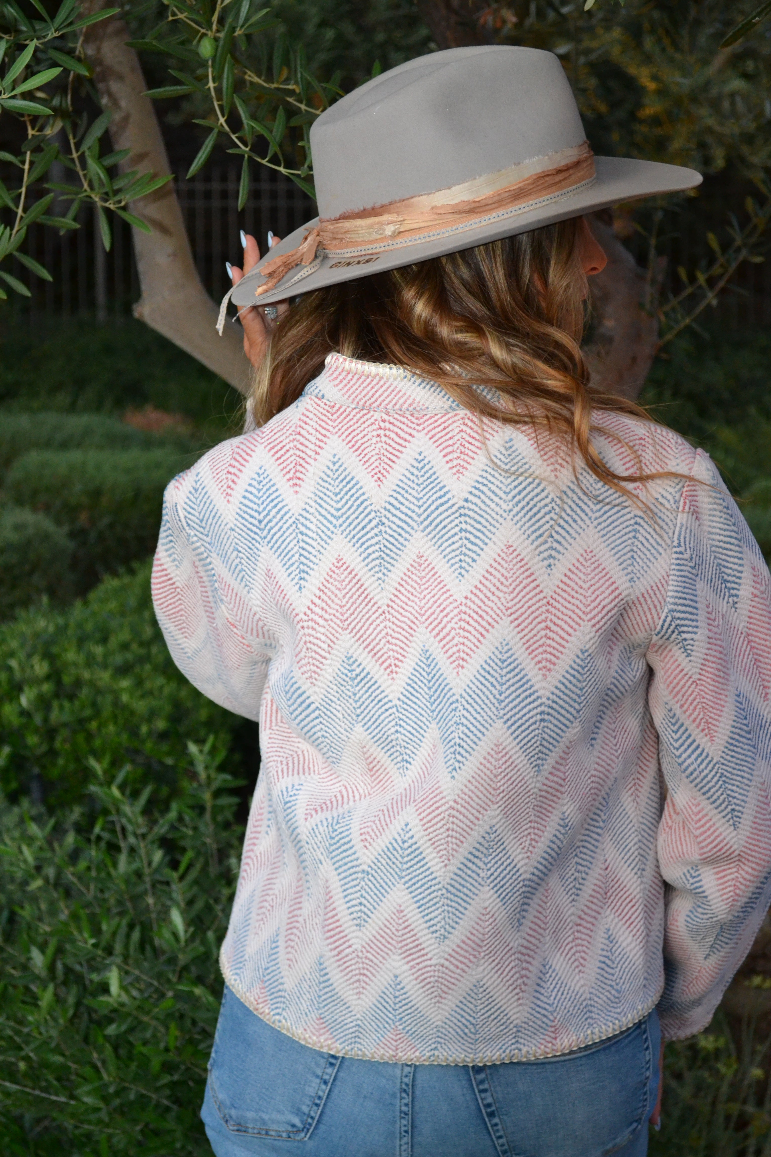 Ginxsi Jackets are made from repurposed Vintage Kantha quilts, and recycled cotton. The original patina may include areas of fraying or patches. Due to the nature of a handmade product, variations in the fabric and color make each piece unique.