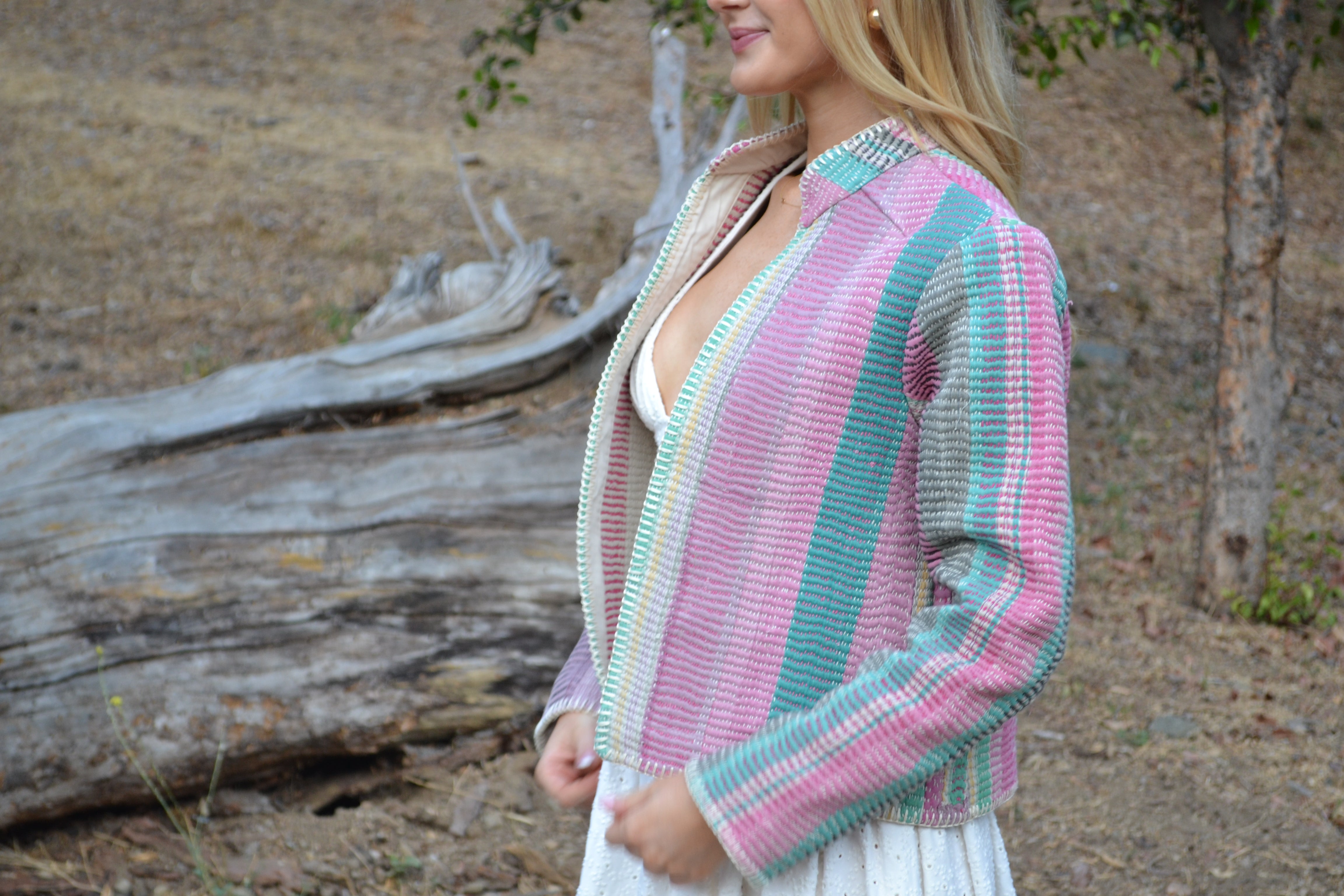 Embrace the beauty of tradition and contemporary style with our exquisite Kantha quilt jacket. Handcrafted by skilled artisans, this unique piece is a fusion of heritage and modern fashion. Each jacket is meticulously crafted using repurposed Vintage Kantha quilts, ensuring a one-of-a-kind garment that tells a story. Jackets are designed for a structured fit. Runs true to size.
