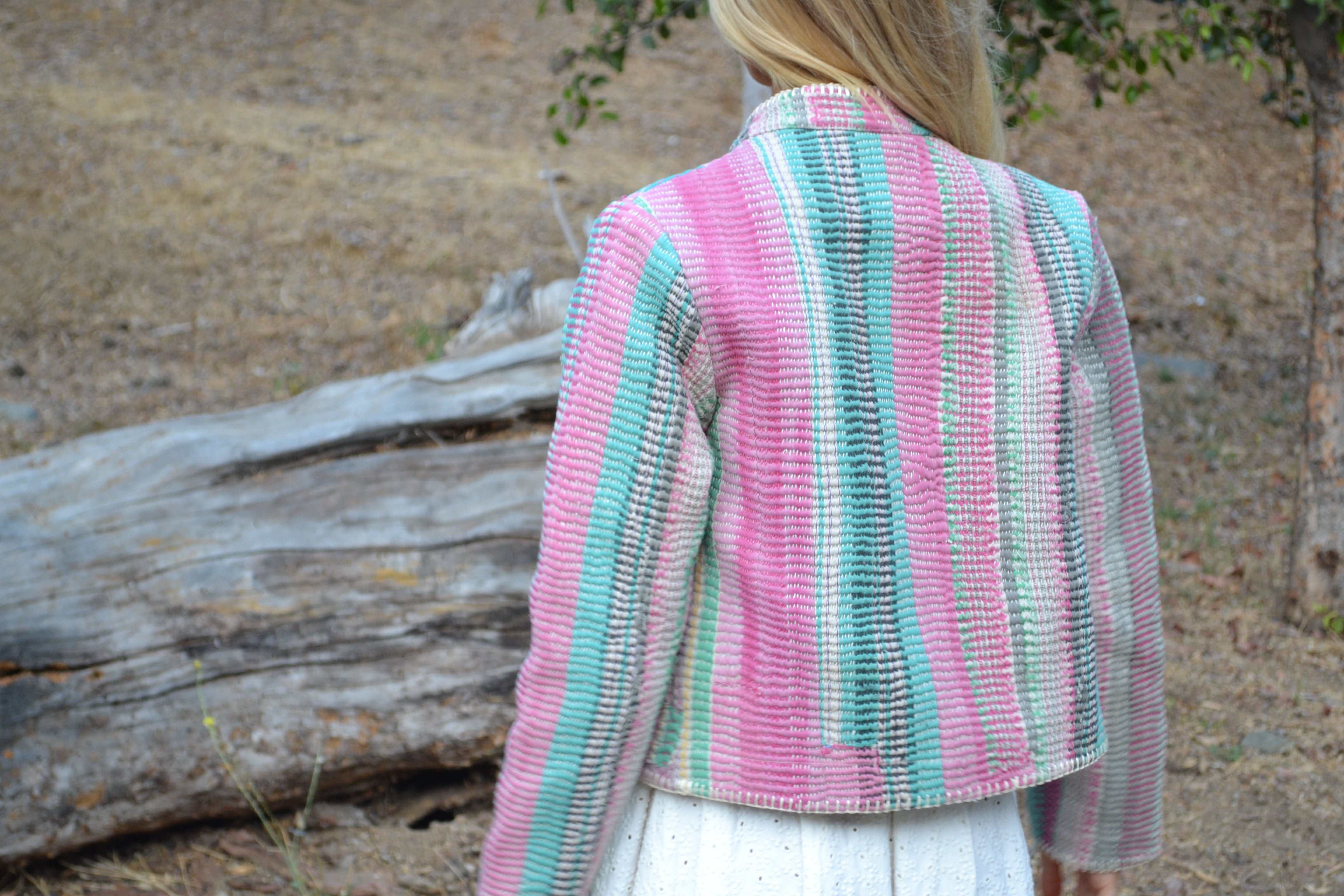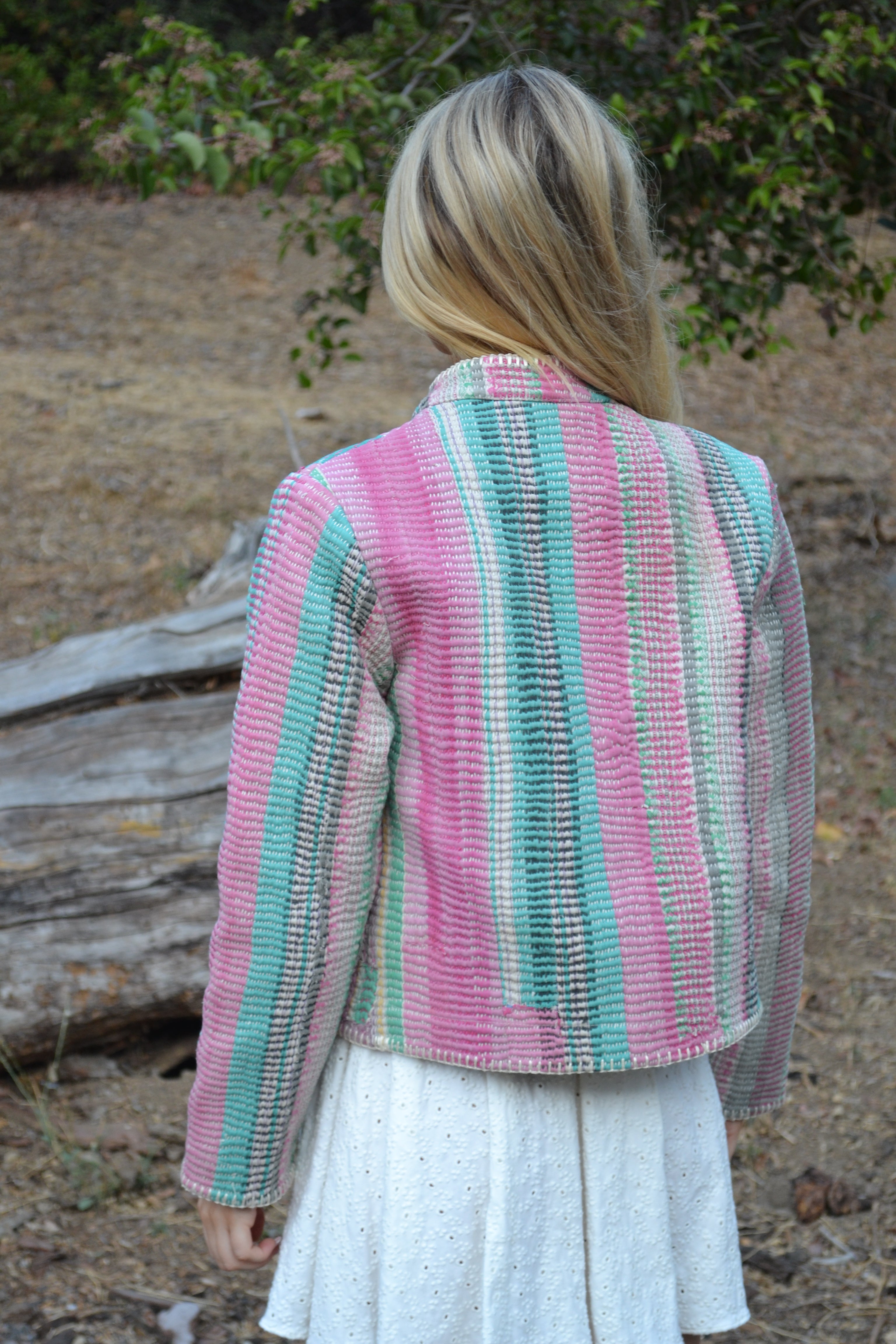 Ginxsi Jackets are made from repurposed Vintage Kantha quilts, and recycled cotton. The original patina may include areas of fraying or patches. Due to the nature of a handmade product, variations in the fabric and color make each piece unique.