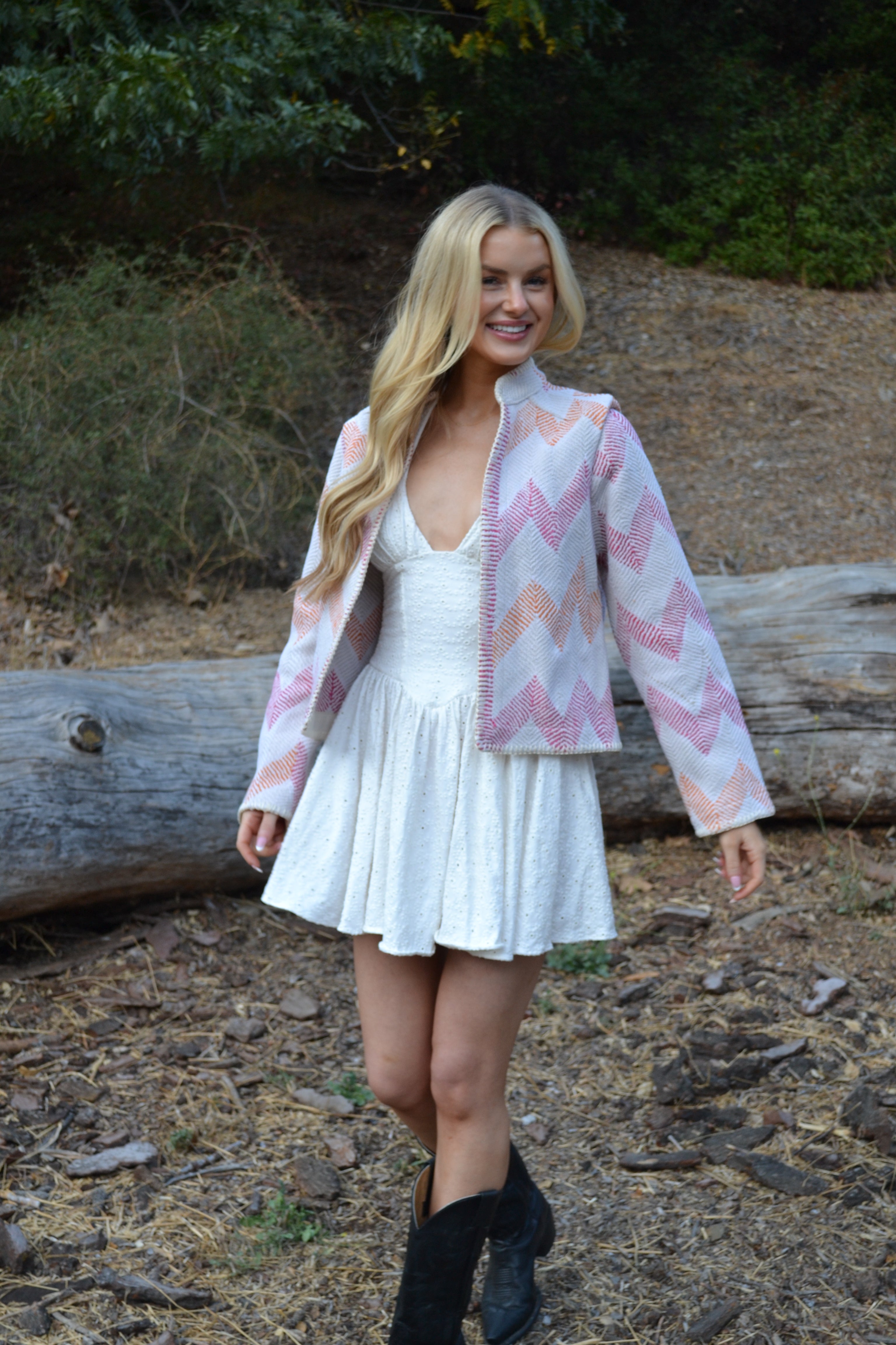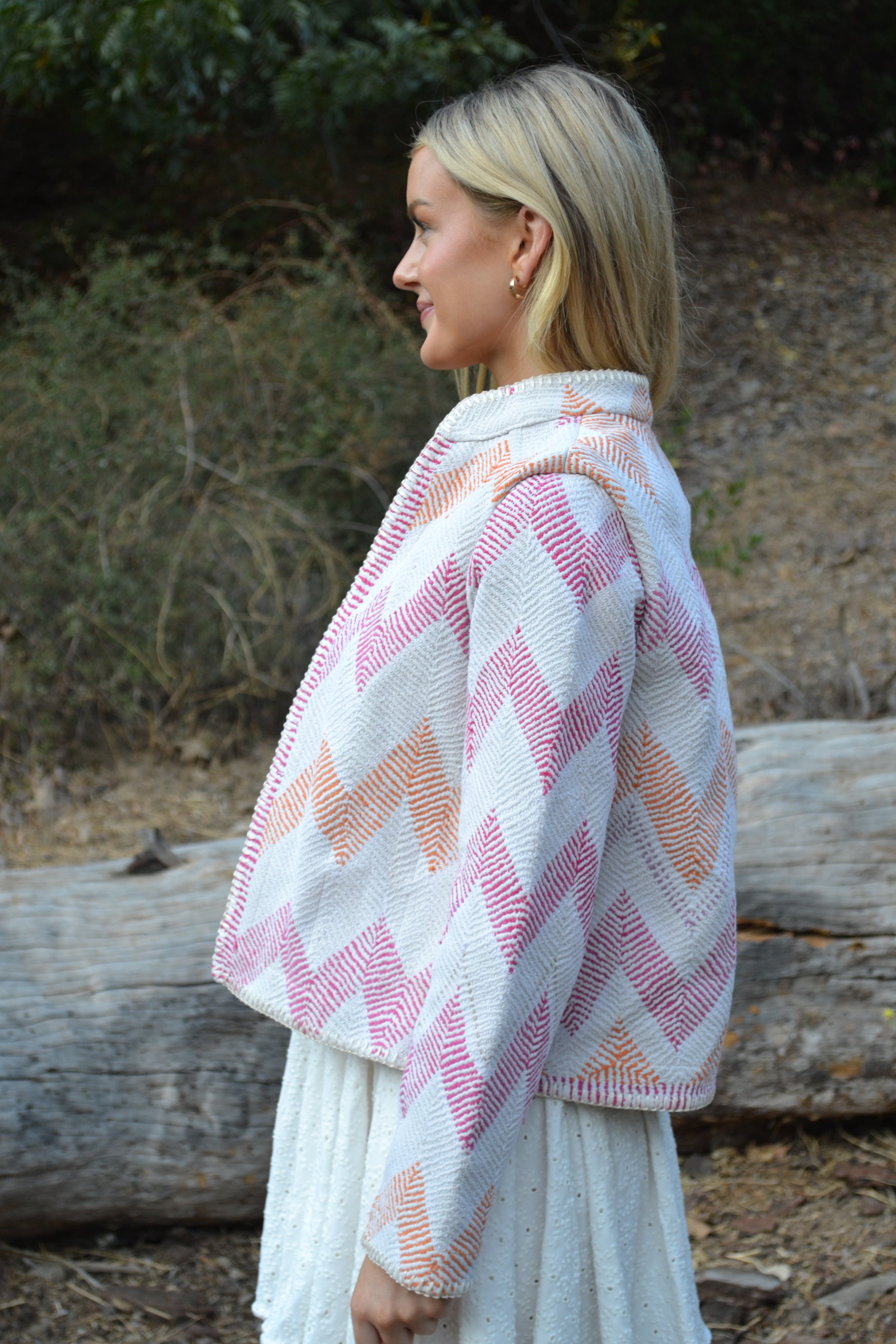 Embrace the beauty of tradition and contemporary style with our exquisite Kantha quilt jacket. Handcrafted by skilled artisans, this unique piece is a fusion of heritage and modern fashion. Each jacket is meticulously crafted using repurposed Vintage Kantha quilts, ensuring a one-of-a-kind garment that tells a story. Jackets are designed for a structured fit. Runs true to size.