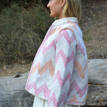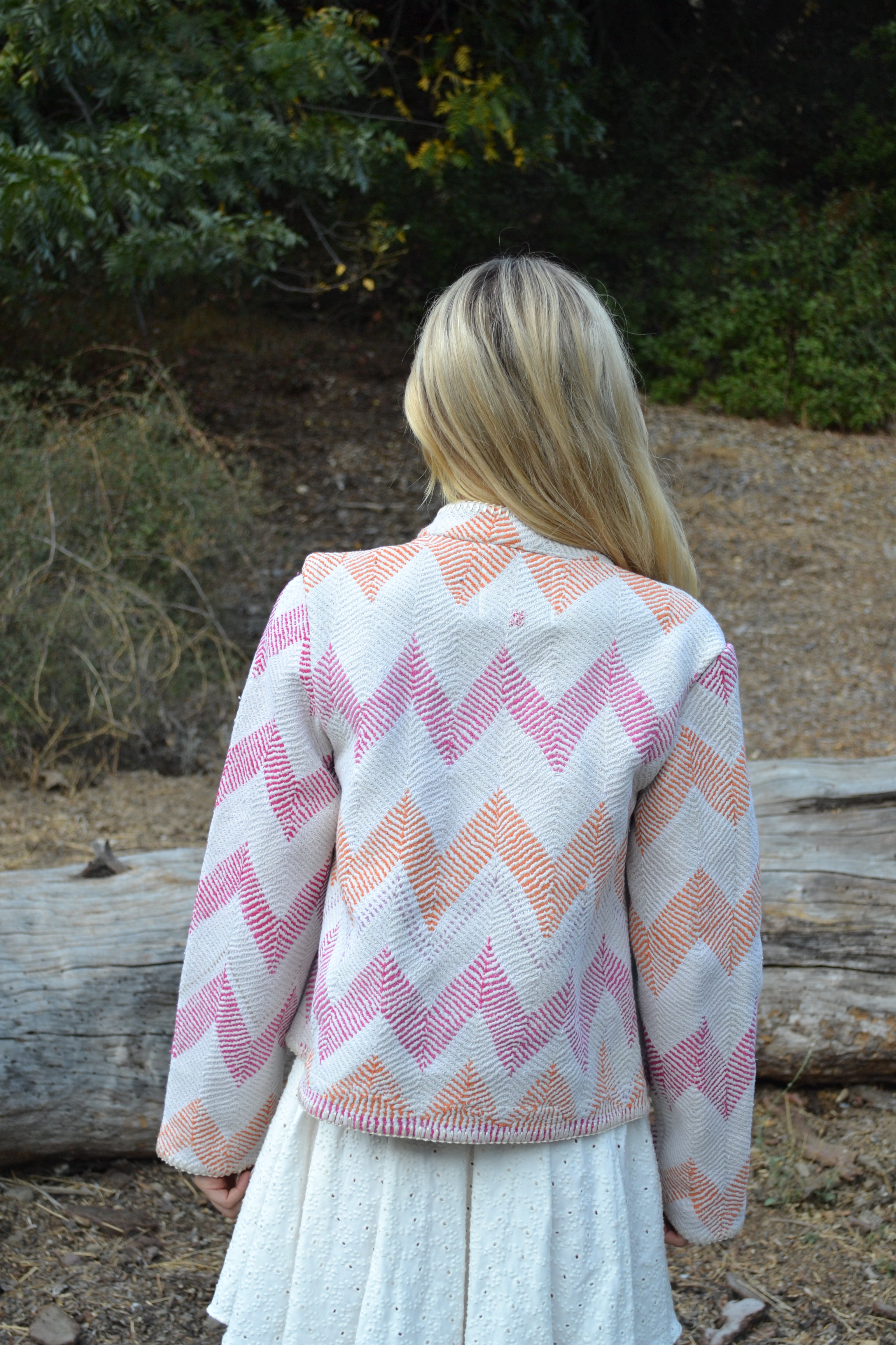 Ginxsi Jackets are made from repurposed Vintage Kantha quilts, and recycled cotton. The original patina may include areas of fraying or patches. Due to the nature of a handmade product, variations in the fabric and color make each piece unique.