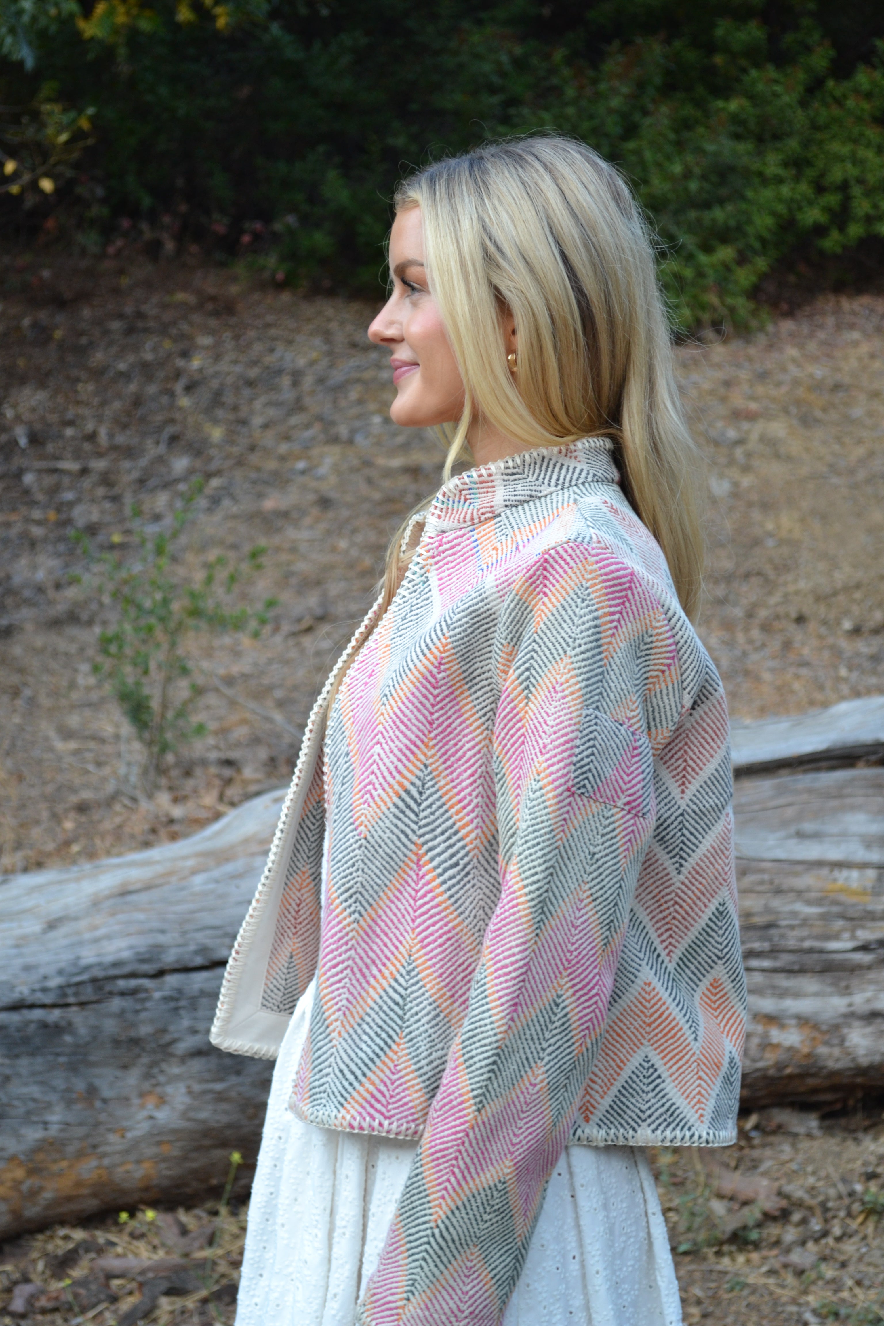 Embrace the beauty of tradition and contemporary style with our exquisite Kantha quilt jacket. Handcrafted by skilled artisans, this unique piece is a fusion of heritage and modern fashion. Each jacket is meticulously crafted using repurposed Vintage Kantha quilts, ensuring a one-of-a-kind garment that tells a story. Jackets are designed for a structured fit. Runs true to size.