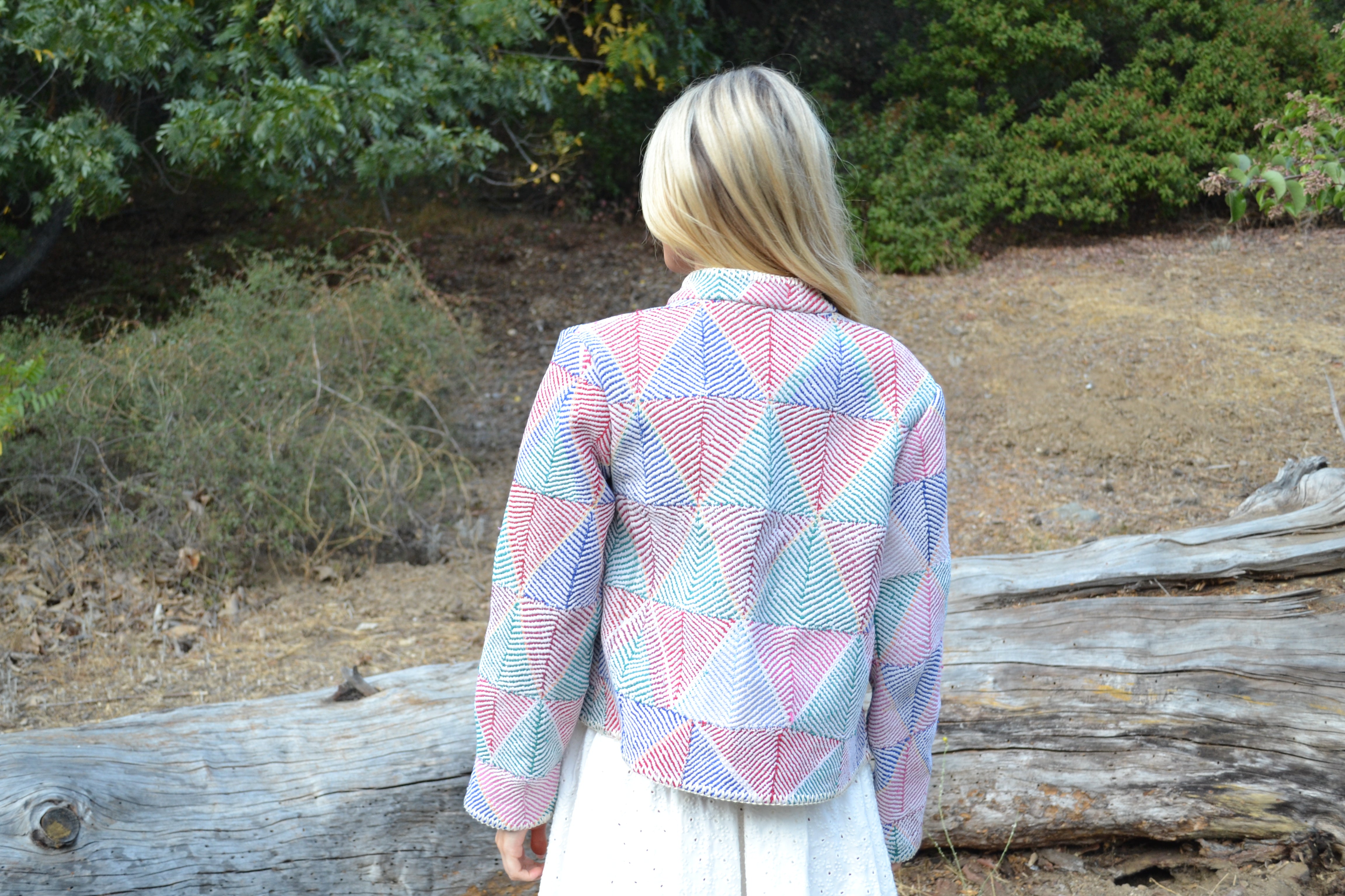 Ginxsi Jackets are made from repurposed Vintage Kantha quilts, and recycled cotton. The original patina may include areas of fraying or patches. Due to the nature of a handmade product, variations in the fabric and color make each piece unique.