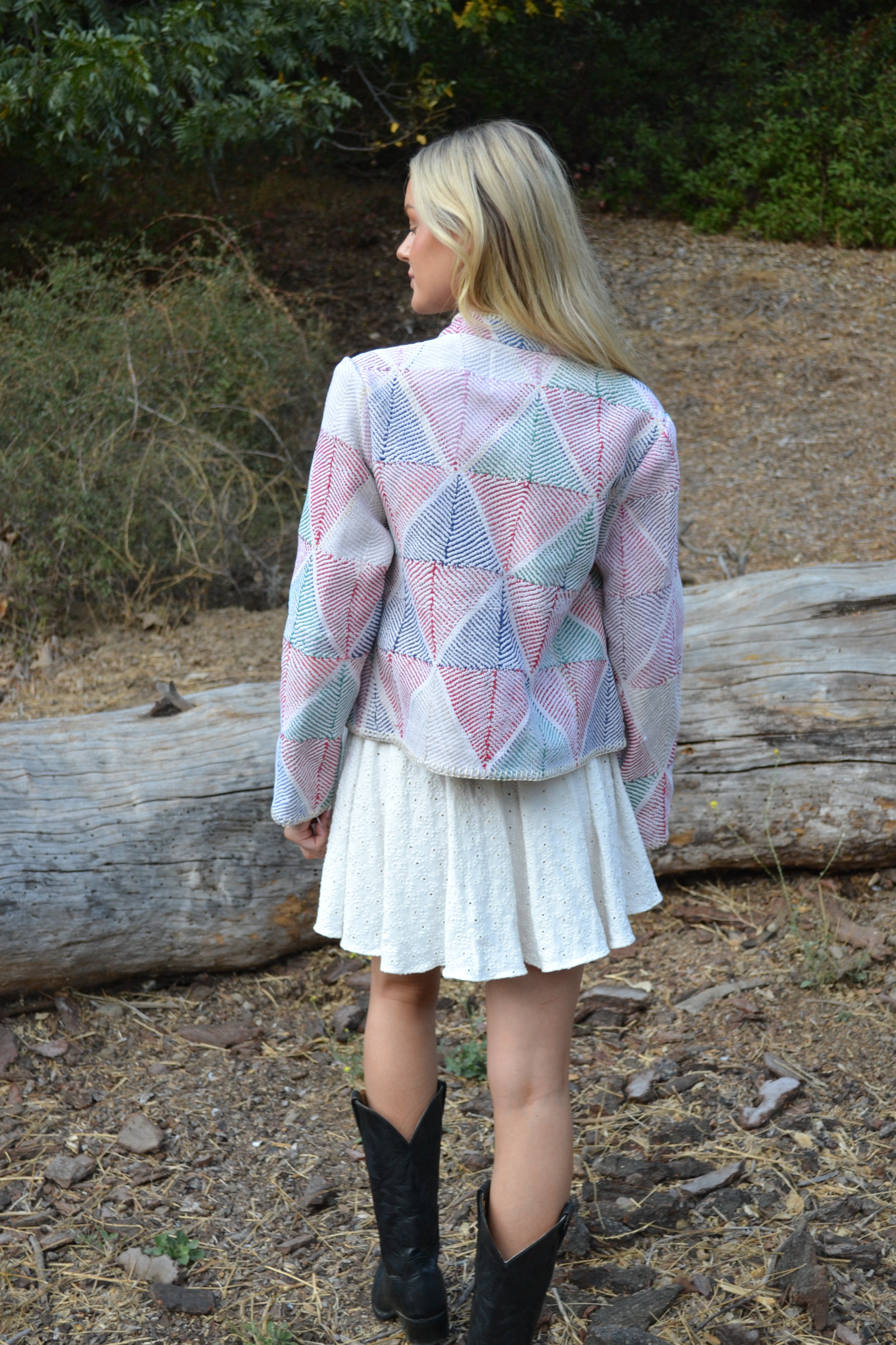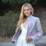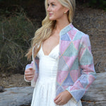 Embrace the beauty of tradition and contemporary style with our exquisite Kantha quilt jacket. Handcrafted by skilled artisans, this unique piece is a fusion of heritage and modern fashion. Each jacket is meticulously crafted using repurposed Vintage Kantha quilts, ensuring a one-of-a-kind garment that tells a story. Jackets are designed for a structured fit. Runs true to size.