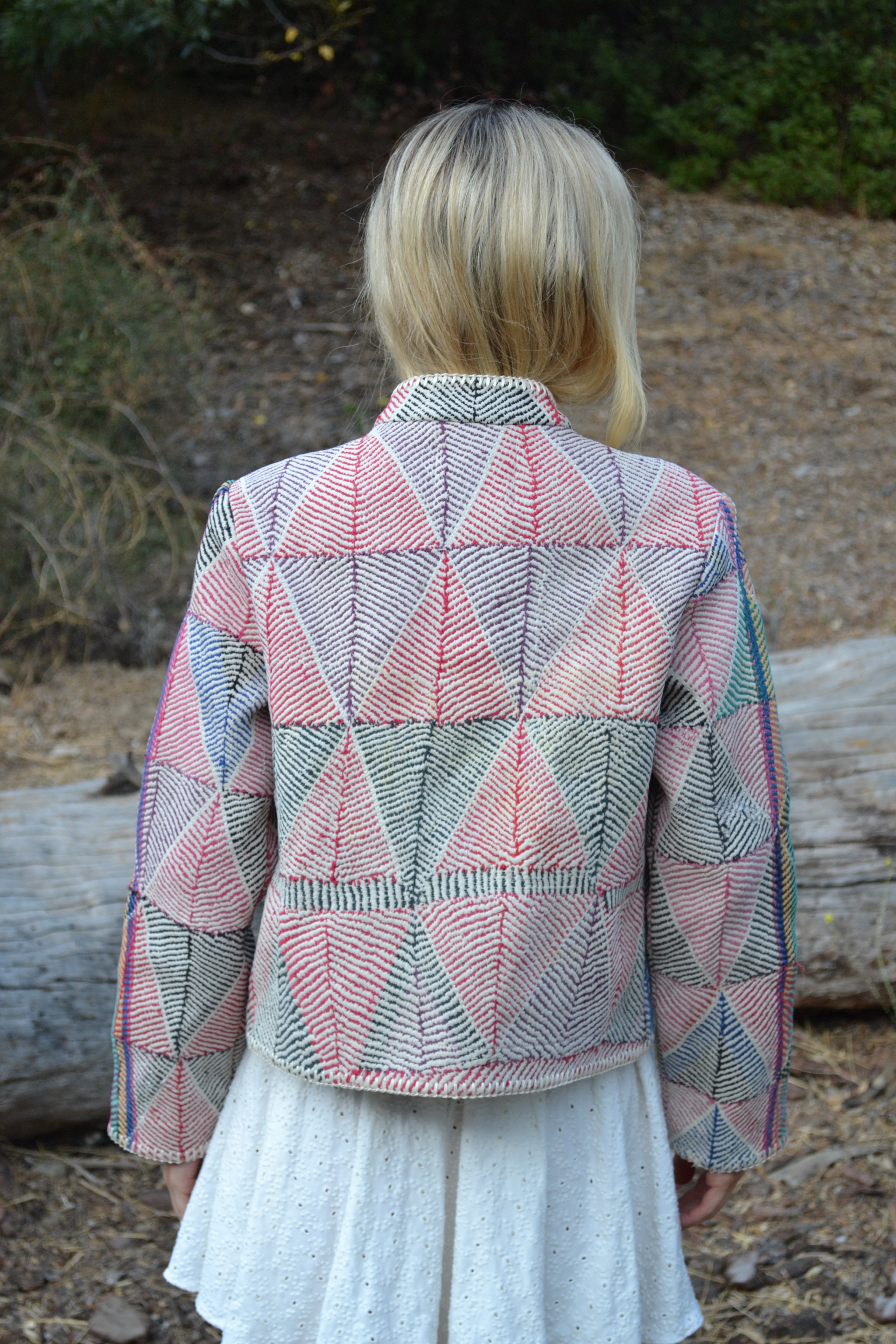 Ginxsi Jackets are made from repurposed Vintage Kantha quilts, and recycled cotton. The original patina may include areas of fraying or patches. Due to the nature of a handmade product, variations in the fabric and color make each piece unique.