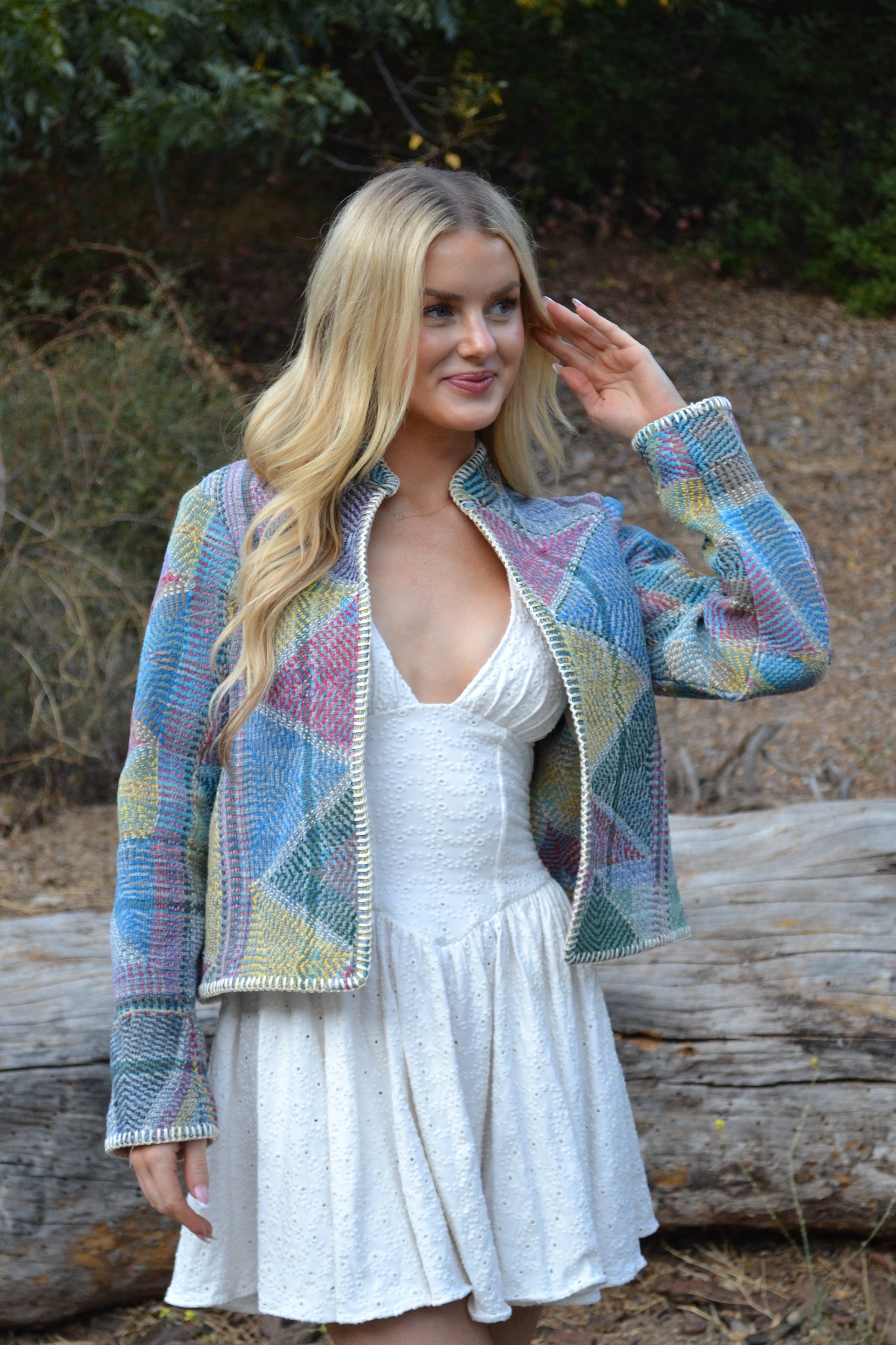 Embrace the beauty of tradition and contemporary style with our exquisite Kantha quilt jacket. Handcrafted by skilled artisans, this unique piece is a fusion of heritage and modern fashion. Each jacket is meticulously crafted using repurposed Vintage Kantha quilts, ensuring a one-of-a-kind garment that tells a story. Jackets are designed for a structured fit. Runs true to size.