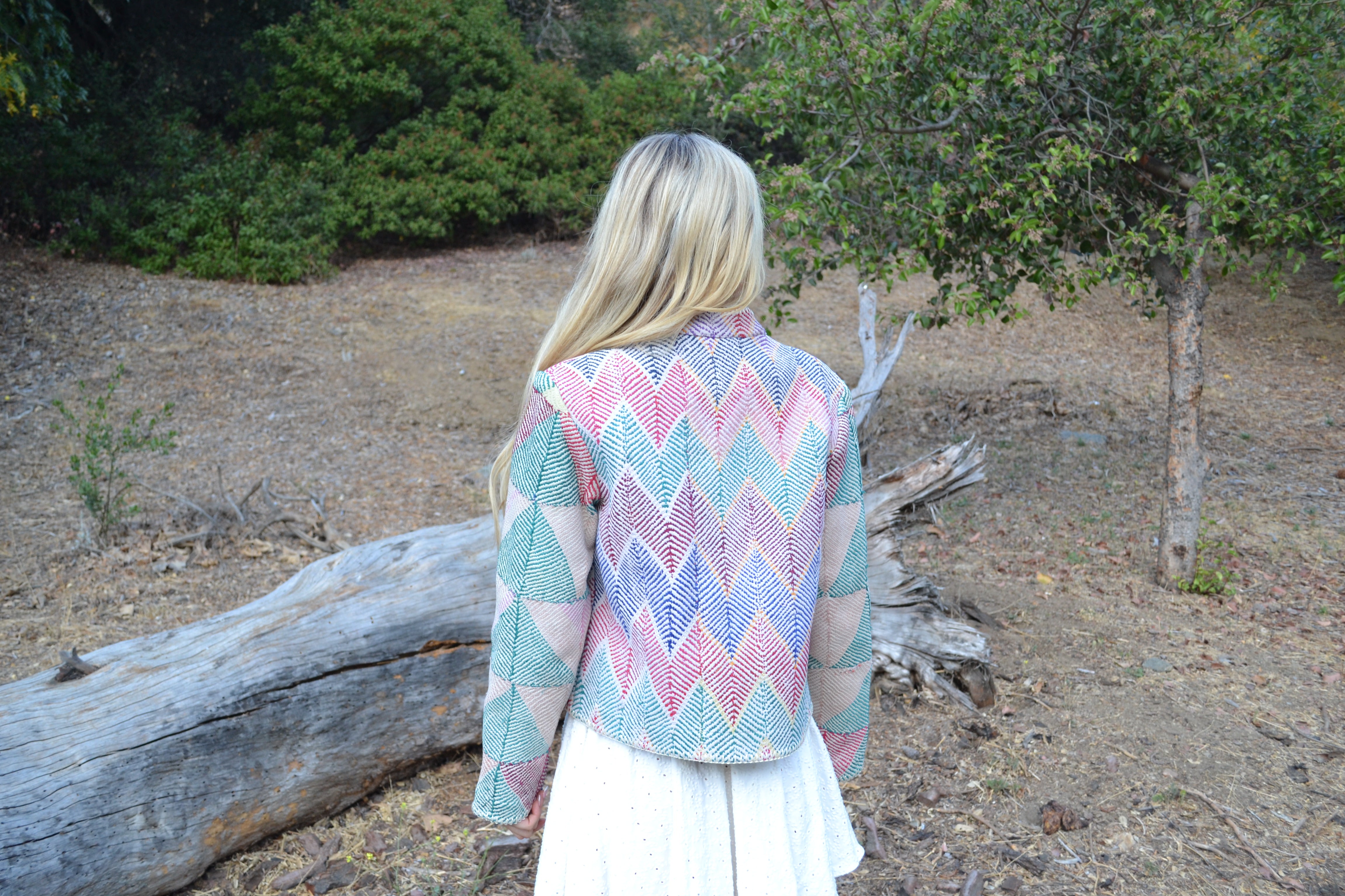Ginxsi Jackets are made from repurposed Vintage Kantha quilts, and recycled cotton. The original patina may include areas of fraying or patches. Due to the nature of a handmade product, variations in the fabric and color make each piece unique.