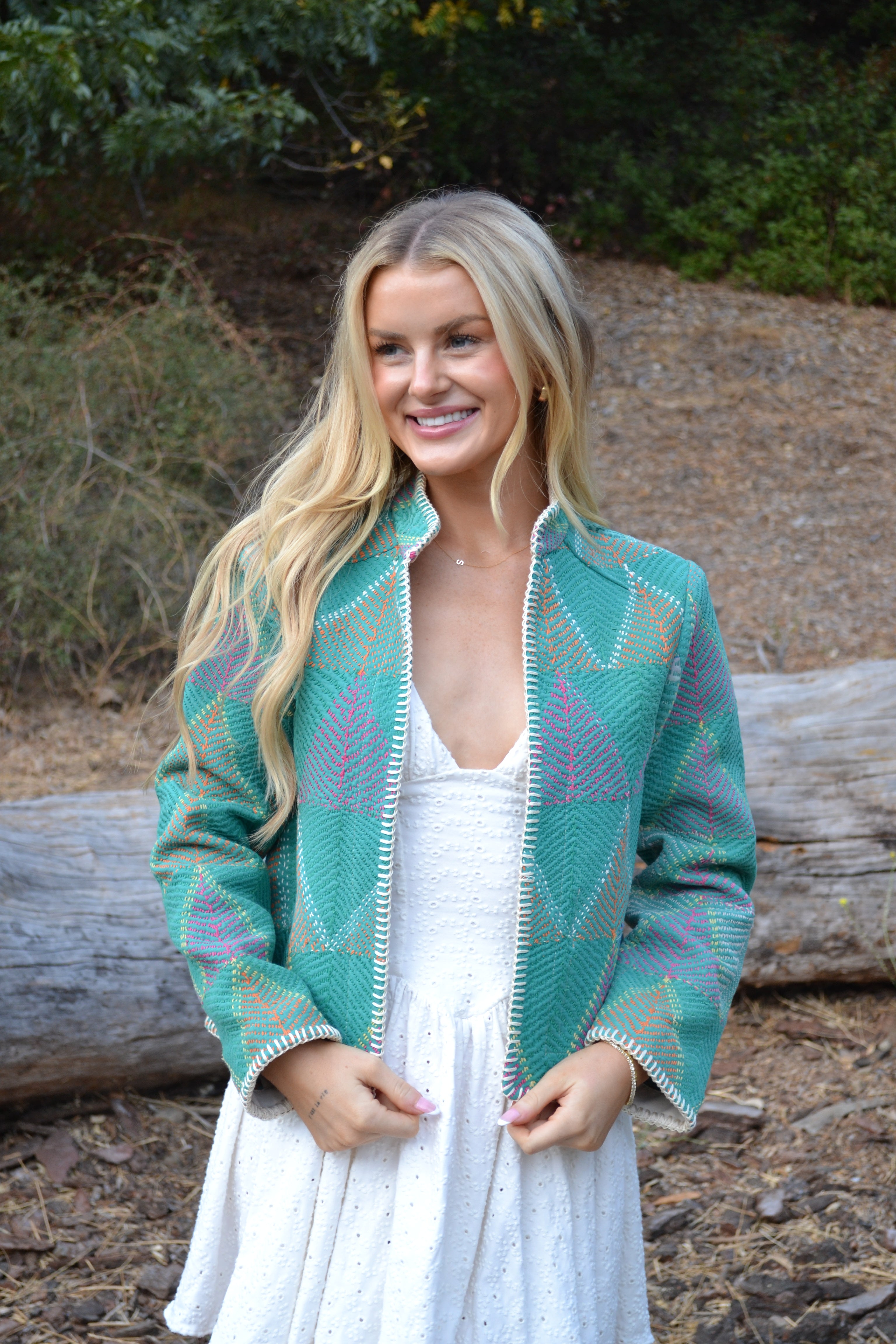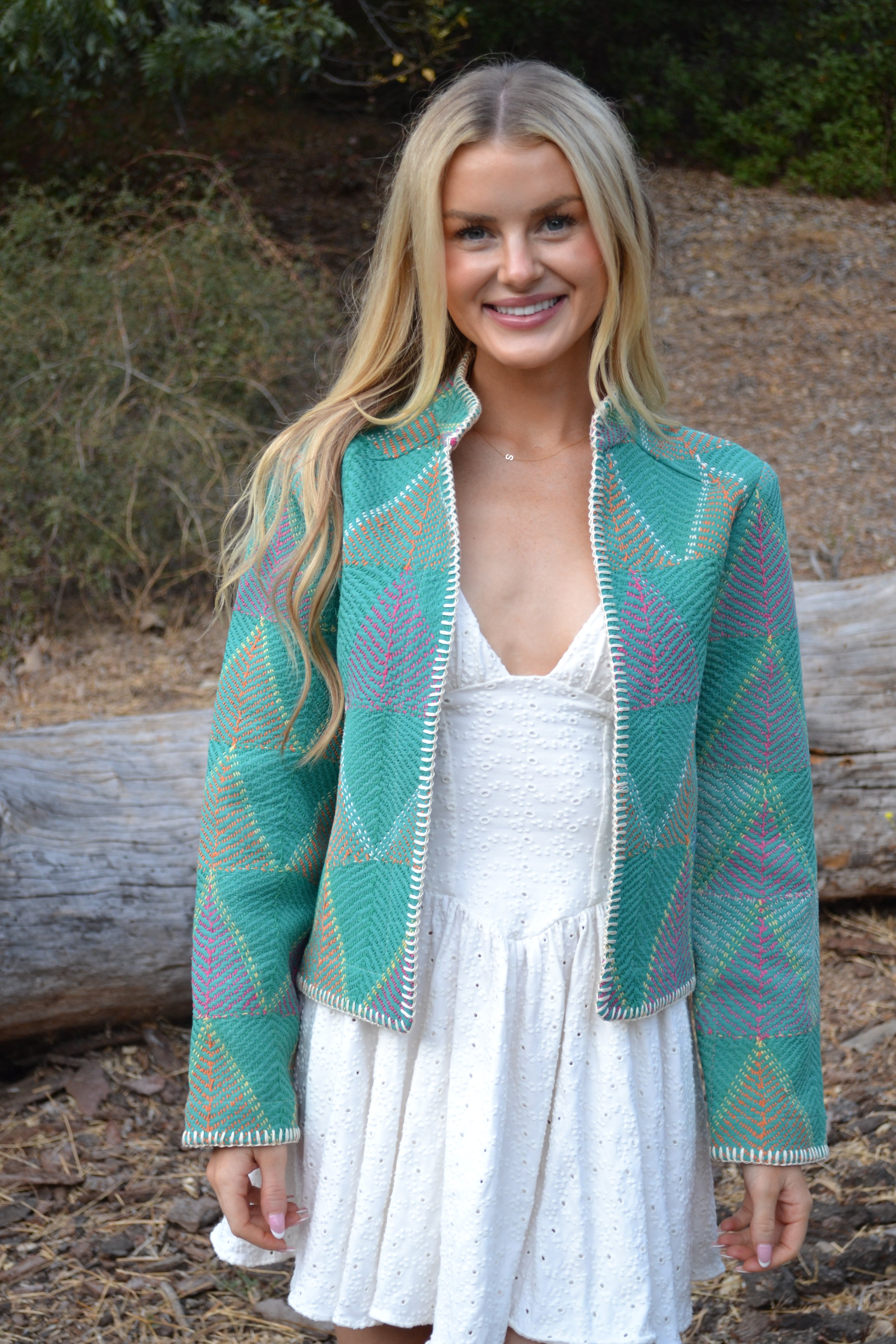 Embrace the beauty of tradition and contemporary style with our exquisite Kantha quilt jacket. Handcrafted by skilled artisans, this unique piece is a fusion of heritage and modern fashion. Each jacket is meticulously crafted using repurposed Vintage Kantha quilts, ensuring a one-of-a-kind garment that tells a story. Jackets are designed for a structured fit. Runs true to size.