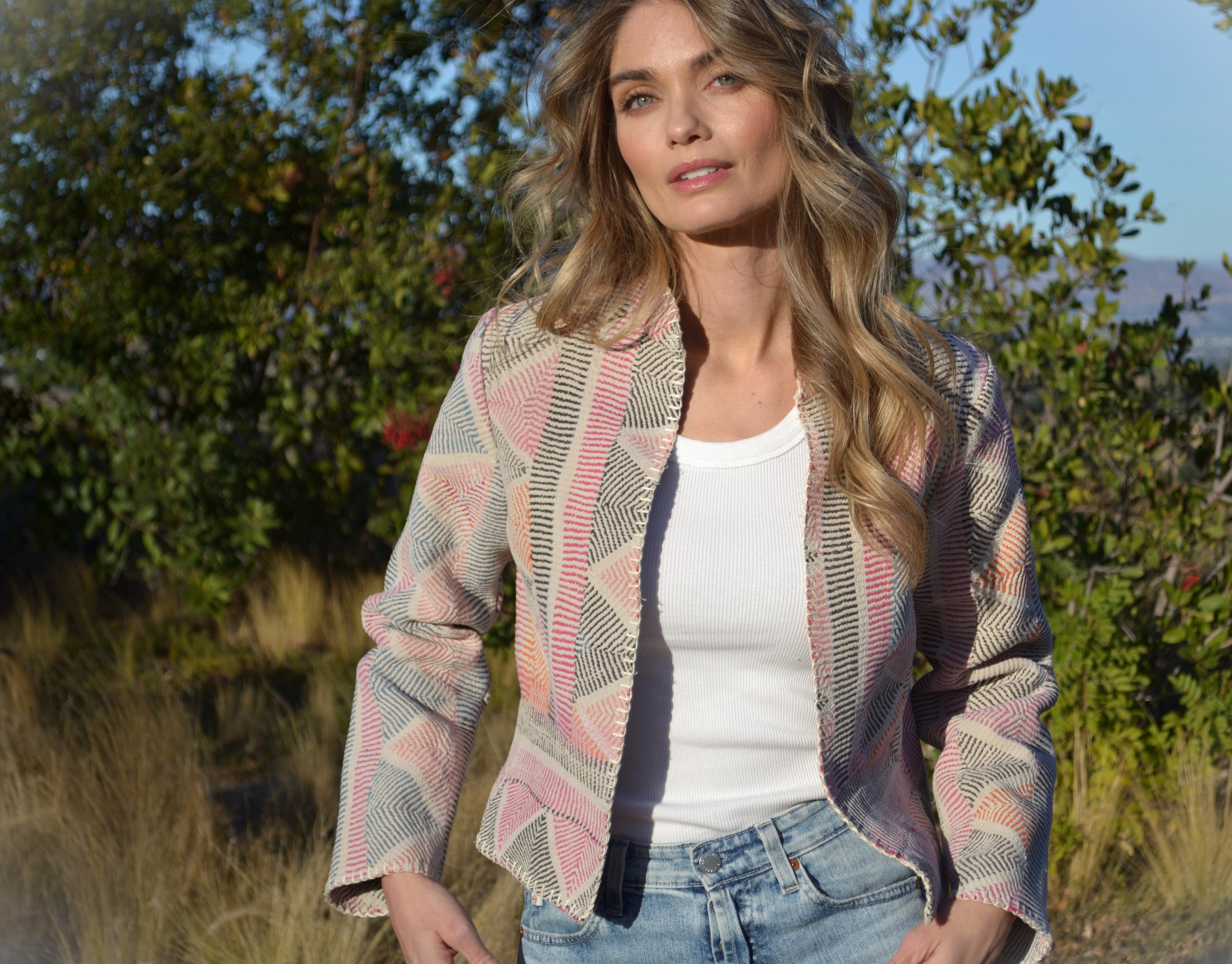 Embrace the beauty of tradition and contemporary style with our exquisite Kantha quilt jacket. Handcrafted by skilled artisans, this unique piece is a fusion of heritage and modern fashion. Each jacket is meticulously crafted using repurposed Vintage Kantha quilts, ensuring a one-of-a-kind garment that tells a story. Jackets are designed for a structured fit. Runs true to size.