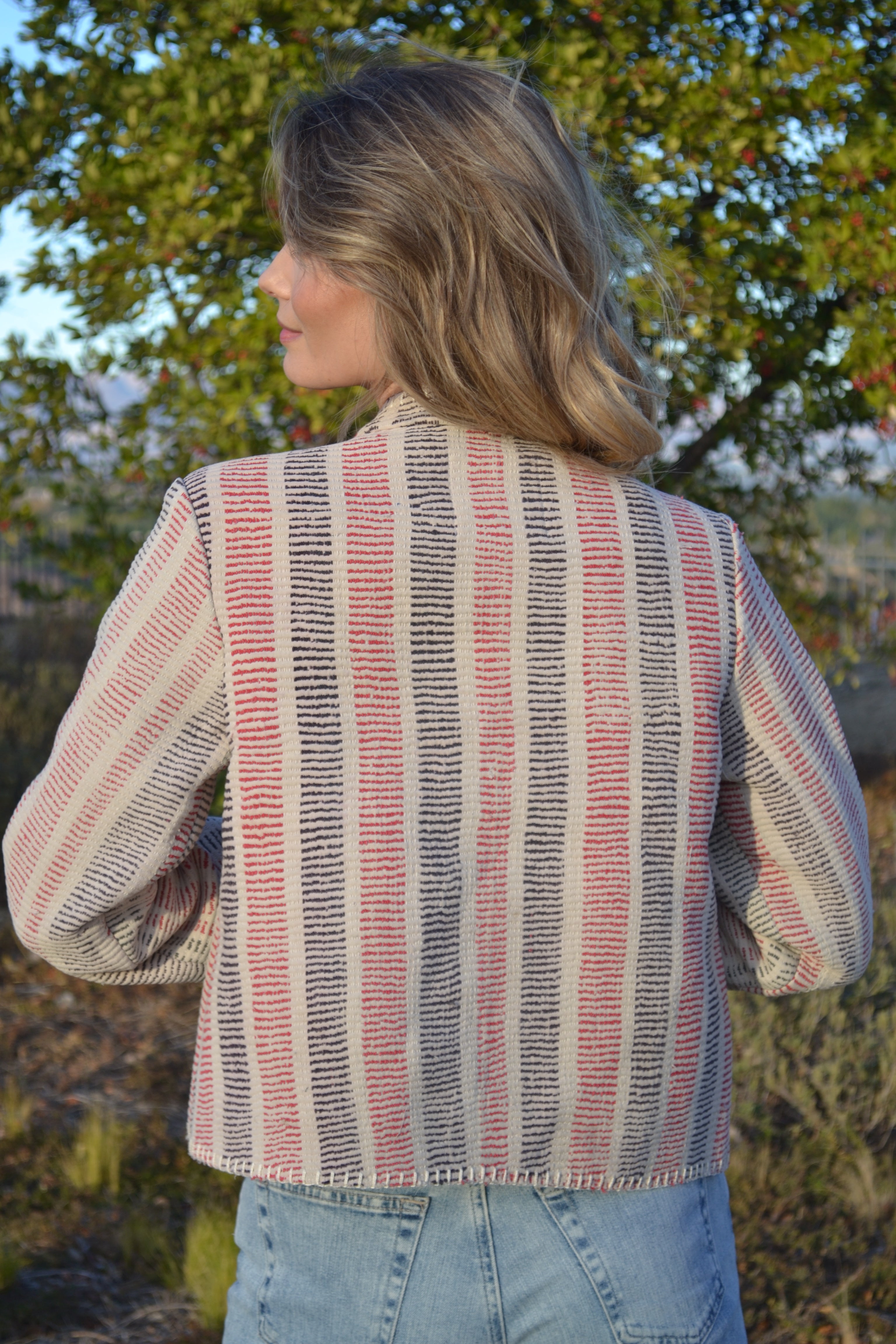 Embrace the beauty of tradition and contemporary style with our exquisite Kantha quilt jacket. Handcrafted by skilled artisans, this unique piece is a fusion of heritage and modern fashion. Each jacket is meticulously crafted using repurposed Vintage Kantha quilts, ensuring a one-of-a-kind garment that tells a story. Jackets are designed for a structured fit. Runs true to size.