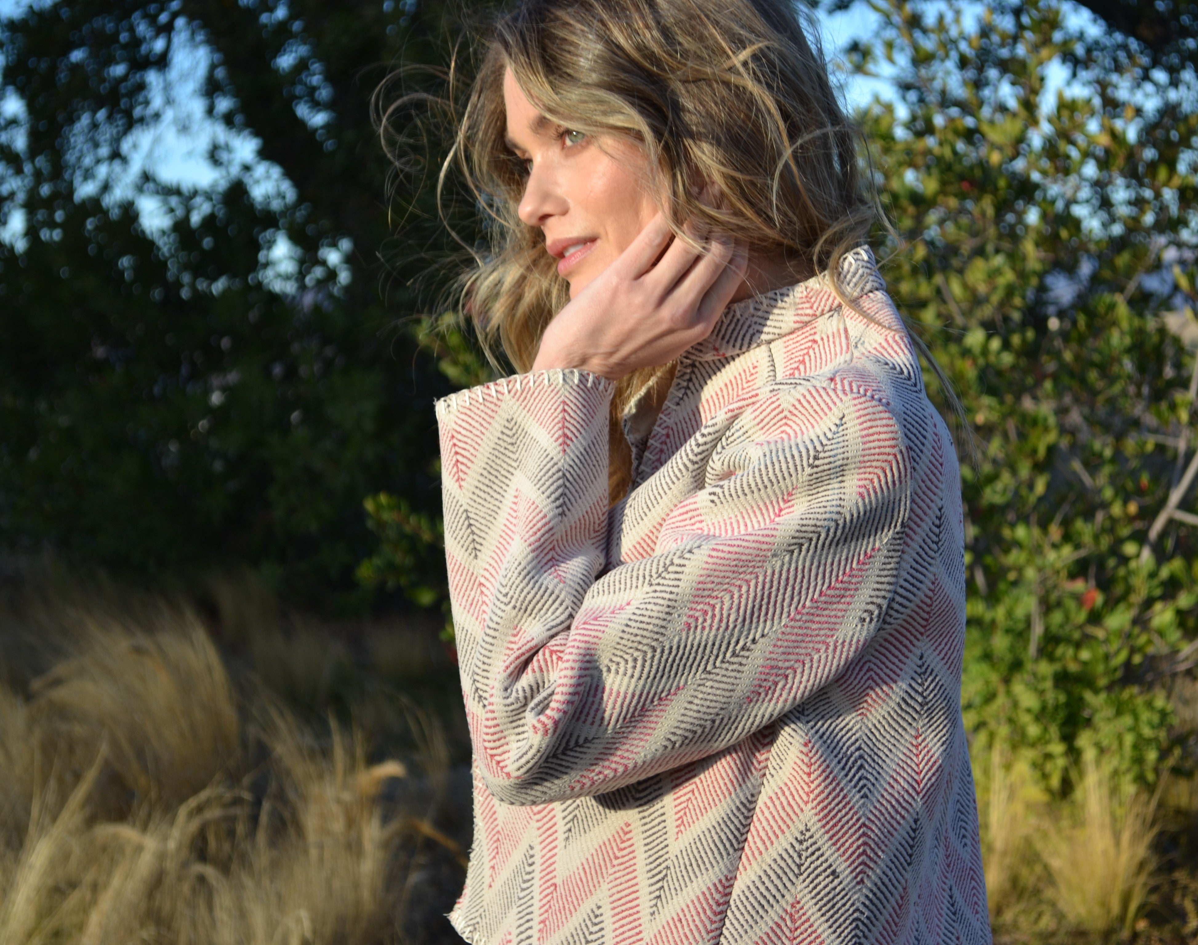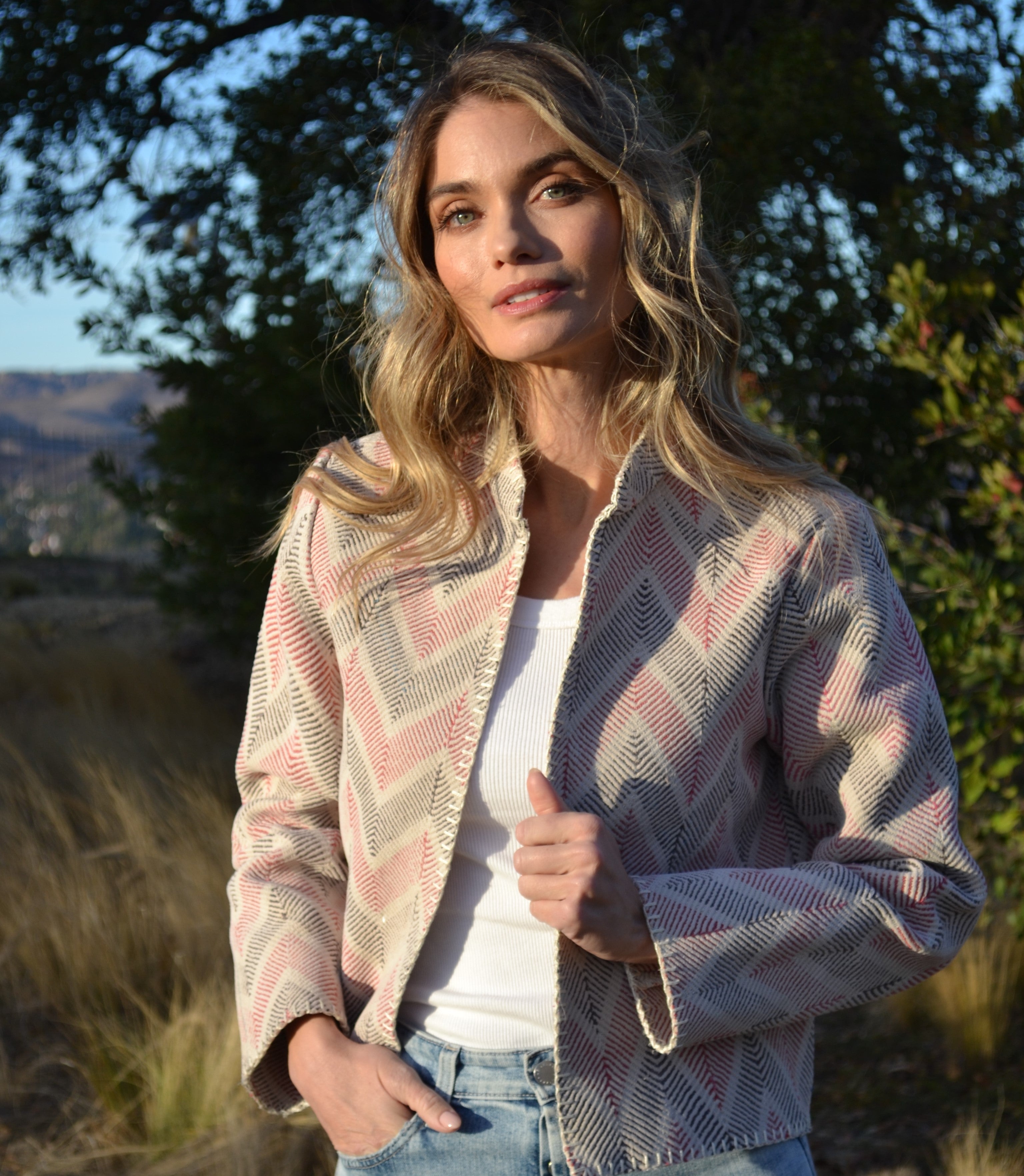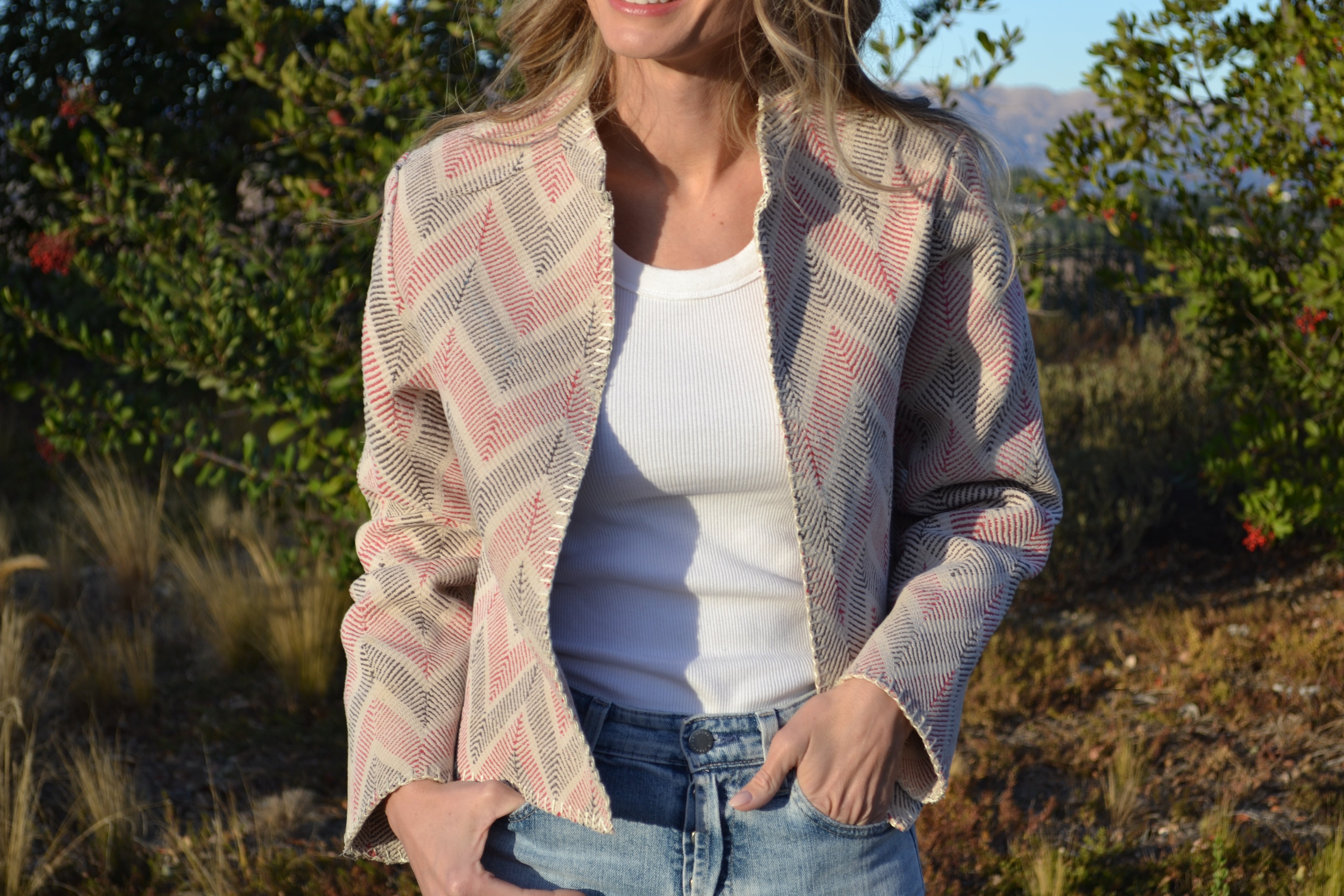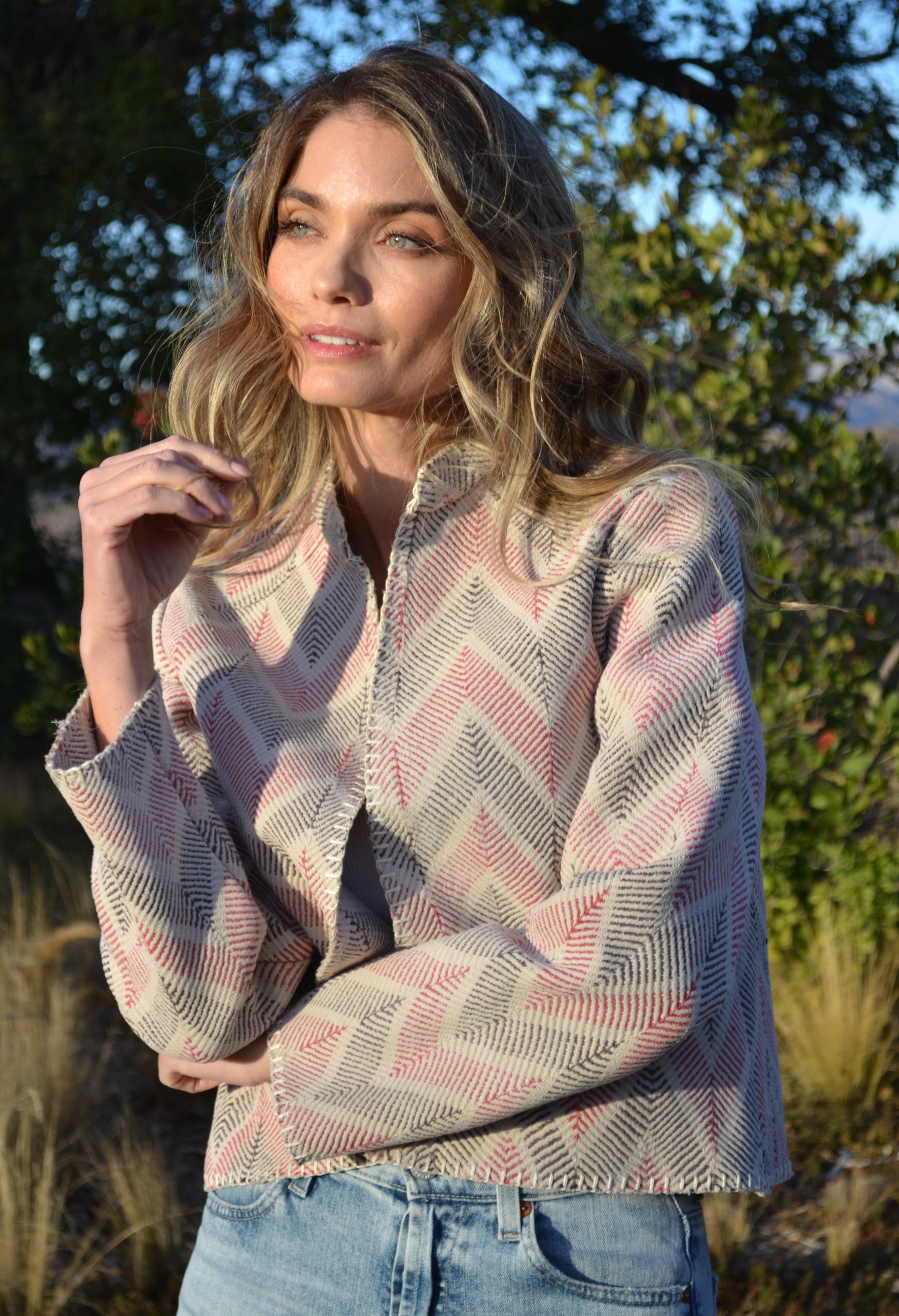 Ginxsi Jackets are made from repurposed Vintage Kantha quilts, and recycled cotton. The original patina may include areas of fraying or patches. Due to the nature of a handmade product, variations in the fabric and color make each piece unique.