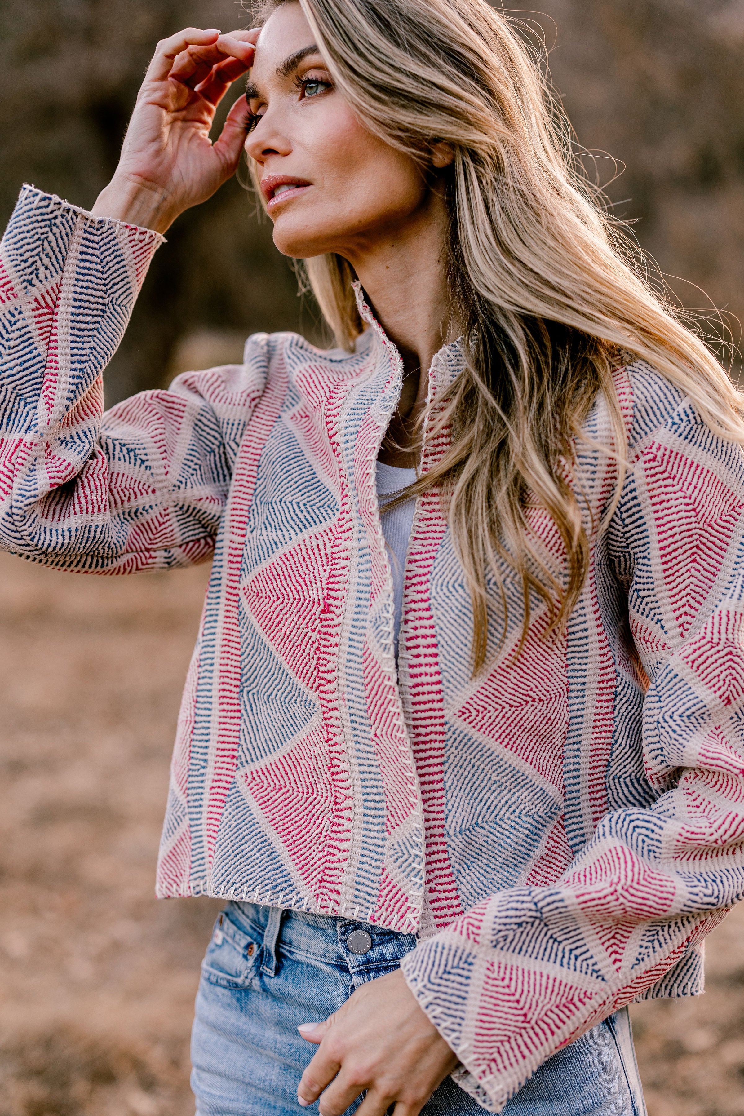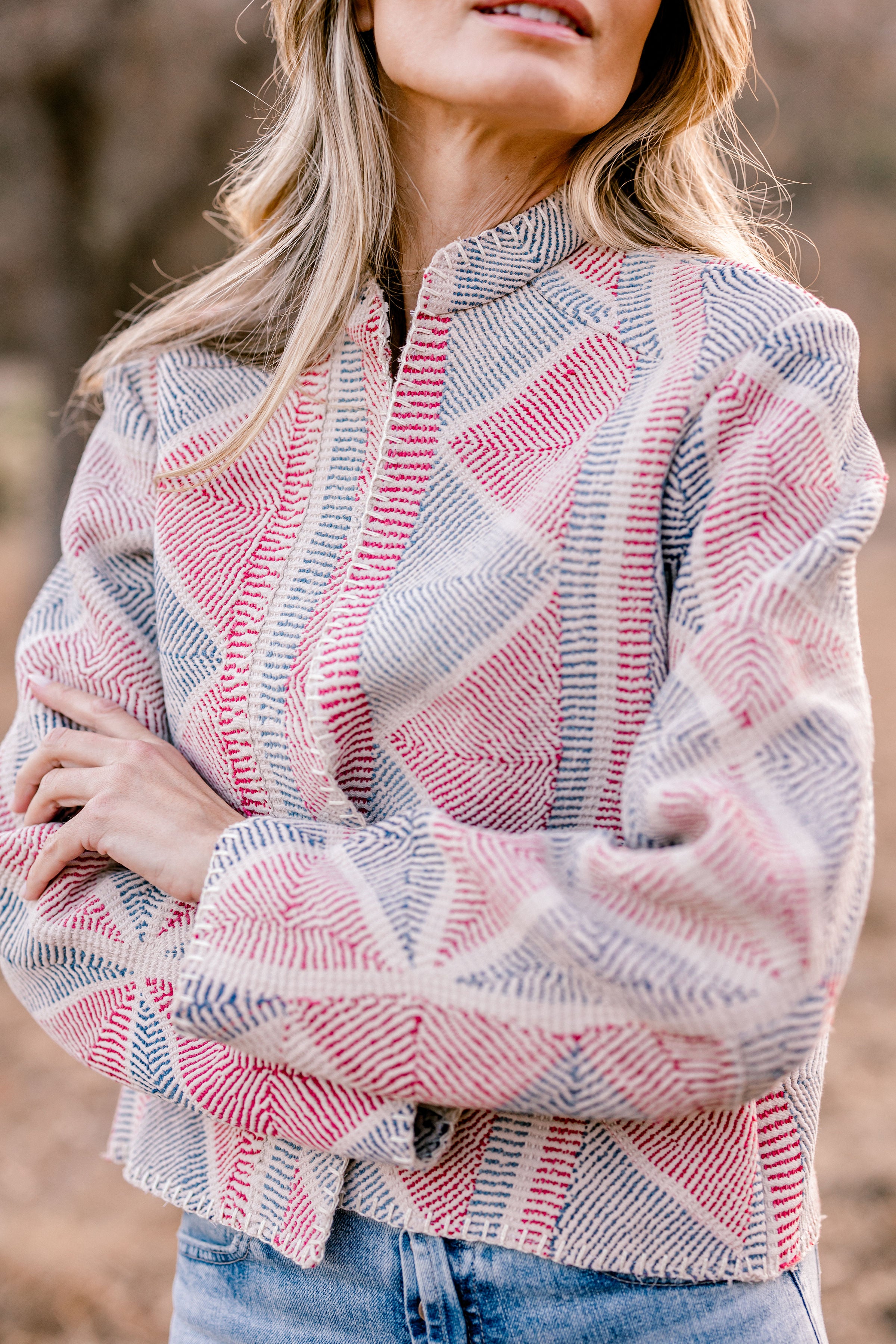 Embrace the beauty of tradition and contemporary style with our exquisite Kantha quilt jacket. Handcrafted by skilled artisans, this unique piece is a fusion of heritage and modern fashion. Each jacket is meticulously crafted using repurposed Vintage Kantha quilts, ensuring a one-of-a-kind garment that tells a story. Jackets are designed for a structured fit. Runs true to size.