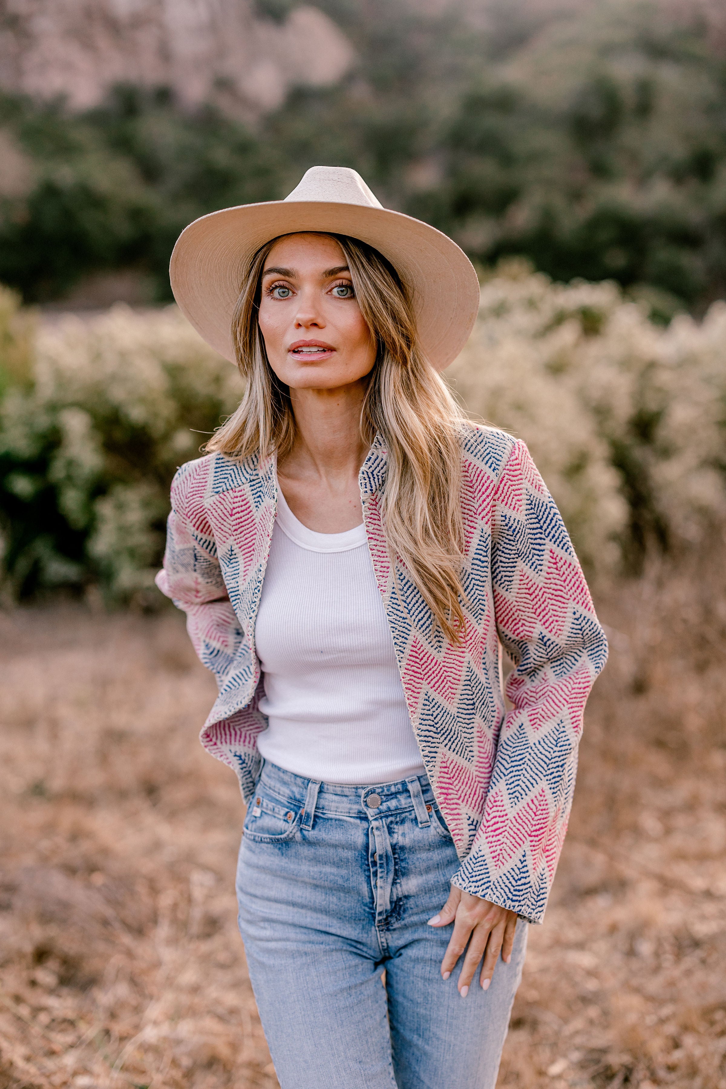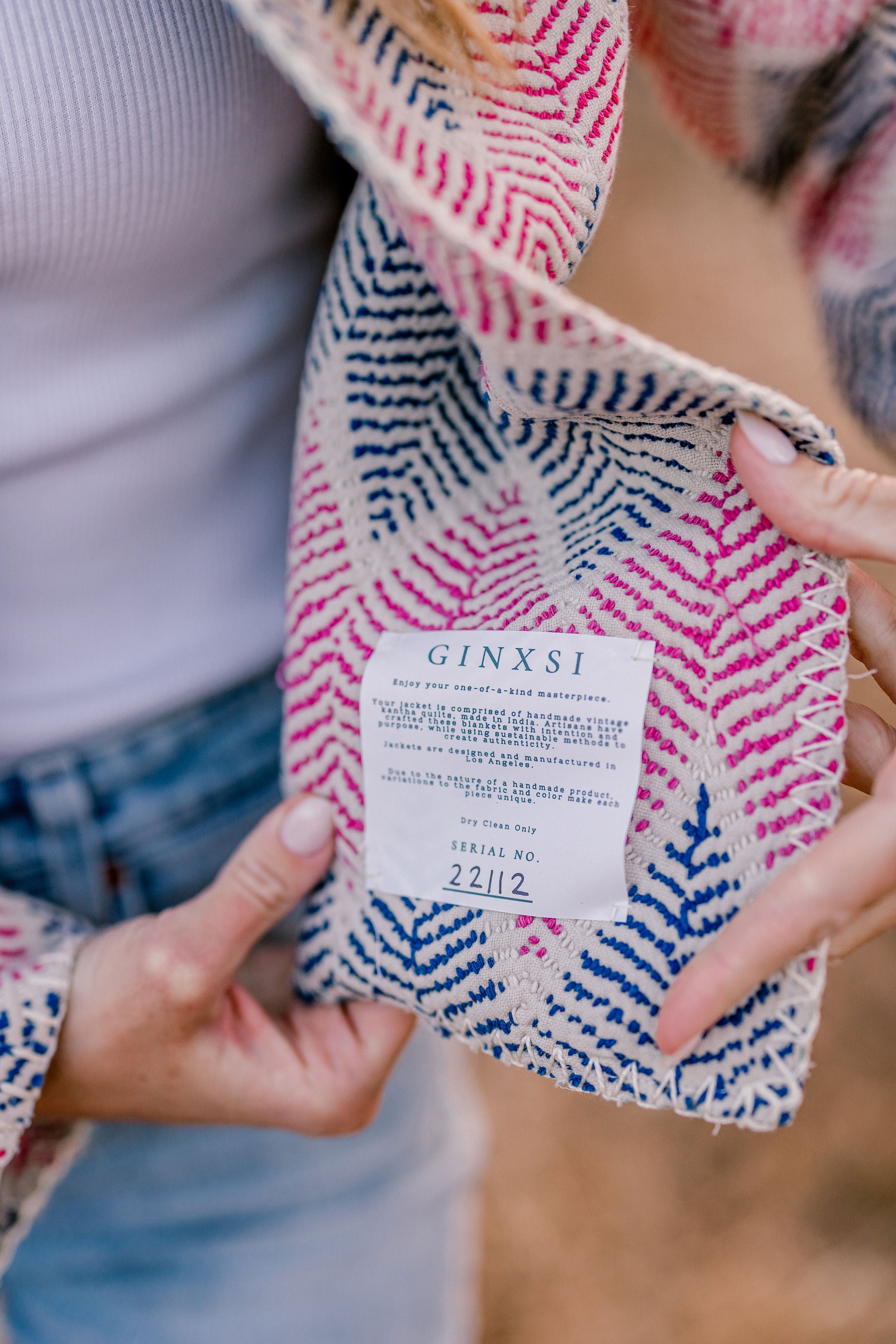 Ginxsi Jackets are made from repurposed Vintage Kantha quilts, and recycled cotton. The original patina may include areas of fraying or patches. Due to the nature of a handmade product, variations in the fabric and color make each piece unique.