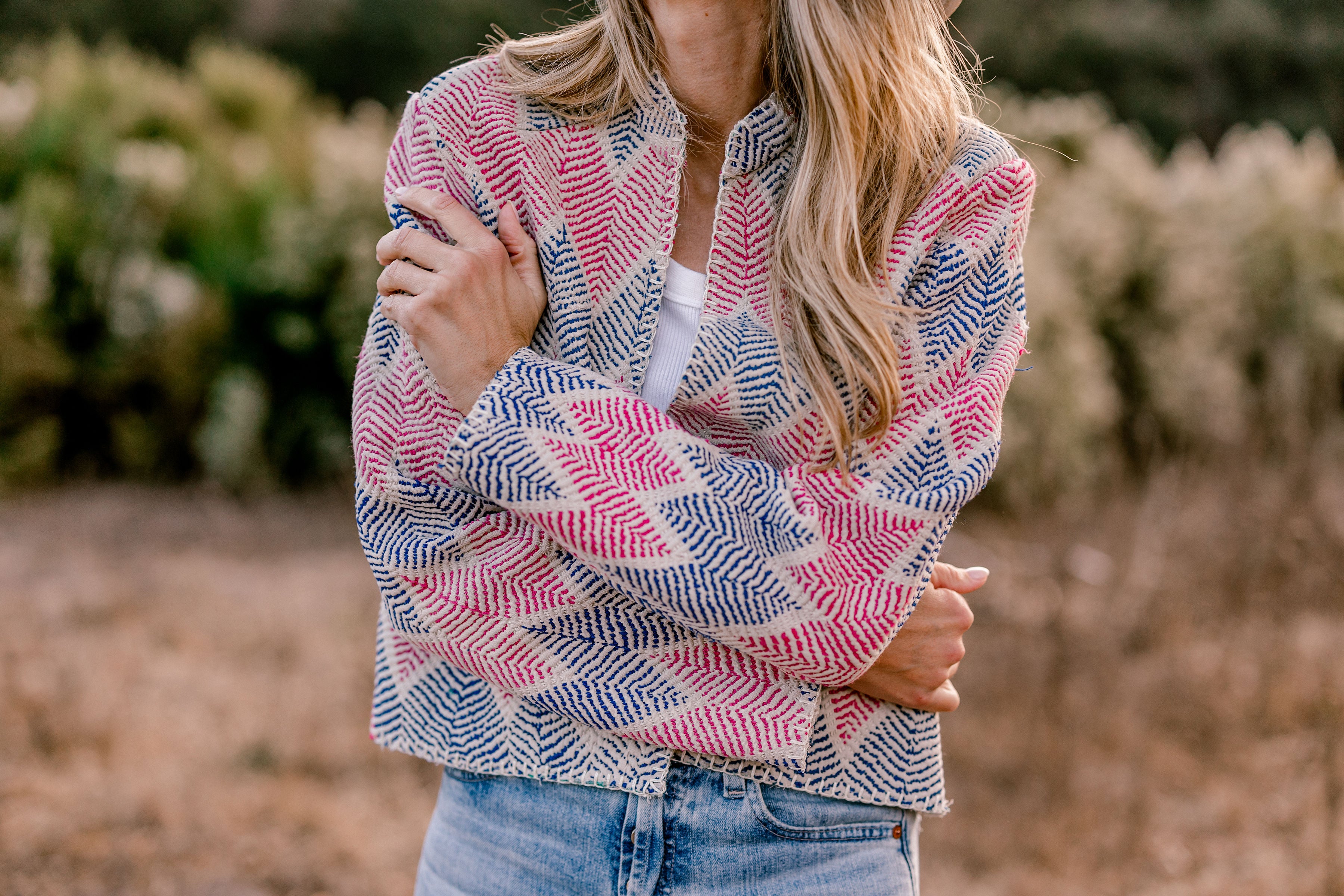Embrace the beauty of tradition and contemporary style with our exquisite Kantha quilt jacket. Handcrafted by skilled artisans, this unique piece is a fusion of heritage and modern fashion. Each jacket is meticulously crafted using repurposed Vintage Kantha quilts, ensuring a one-of-a-kind garment that tells a story. Jackets are designed for a structured fit. Runs true to size.